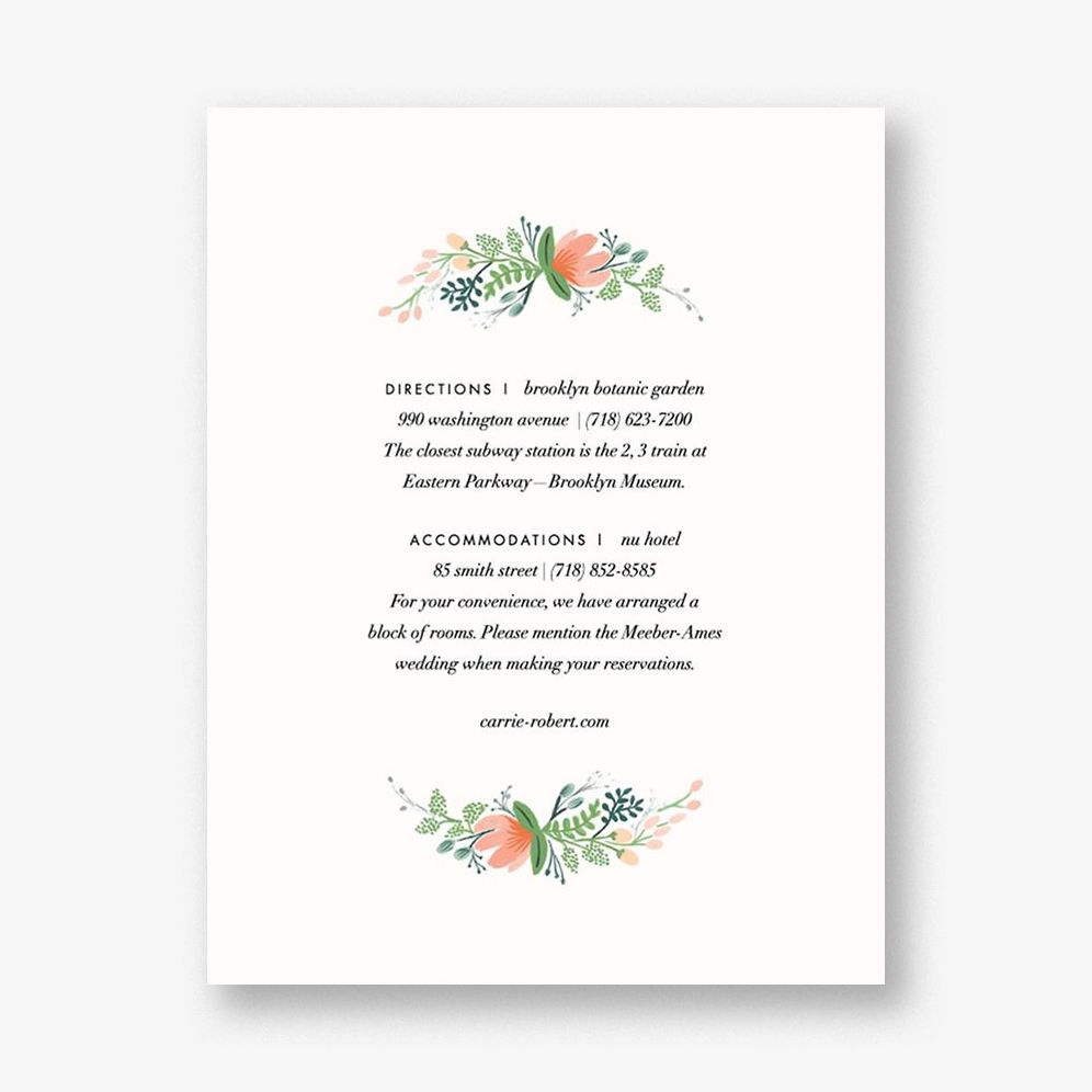 Send out adorable information card to get your guests excited for your big day. This Rifle Paper Co. for Paperless Post design is wrapped in wildflowers featuring florals in peachy pink tones with accents of greens. Printed on Mohawk superfine white 130 lb. card stock that is soft to the touch and matches our superfine white envelopes. Paper is FSC certified and made using wind power.