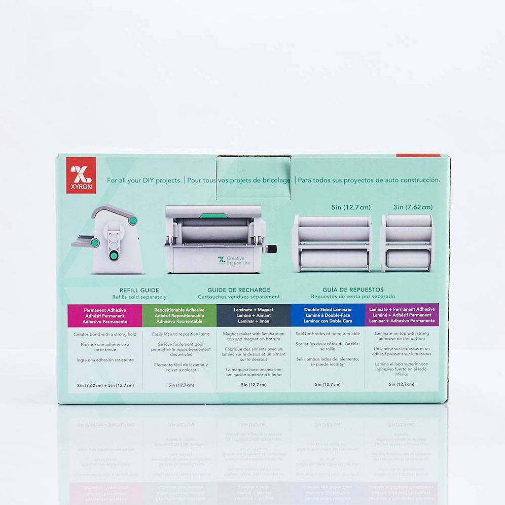 The Xyron?? Creative Station Lite???? is a compact all-in-one tool for adding adhesive. magnet or lamination to your creative projects. This handy machine accepts two different sized refill cartridges minimizing waste and maximizing flexibility for your smaller sized projects. There is no heat. batteries or electricity required and the drop-in-refill cartridges allow you to switch applications quickly and easily. Xyron?? Creative Station Lite???? is ideal for making wedding invitations. handmade cards. educational flash cards. and home decorating projects.