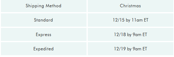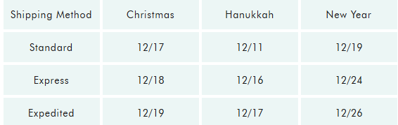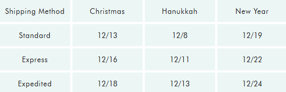 Holiday Shipping Cutoffs