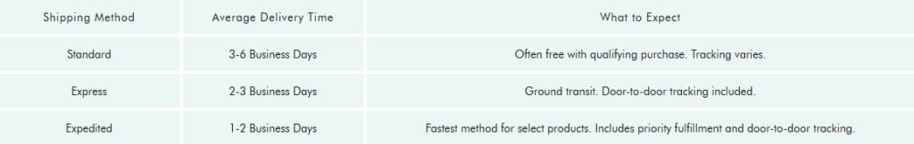 These timeframes apply to non-custom products. Please add 5 days for production of customized items.