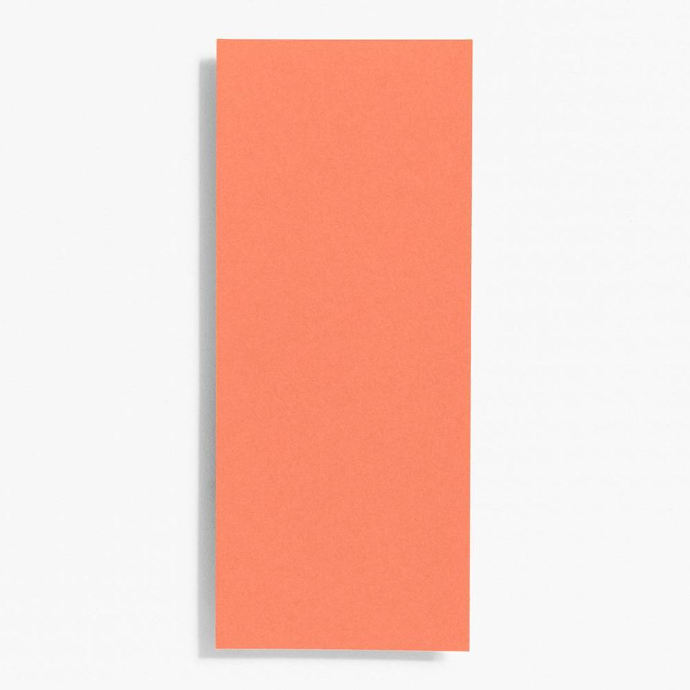 Our flat card in cover weight fits in our #10 open end envelopes. this slender design is perfect for a quick note or a unique invitation. In our orange that is really more coral but darker. salmon but not fishy. so let’s call it papaya.