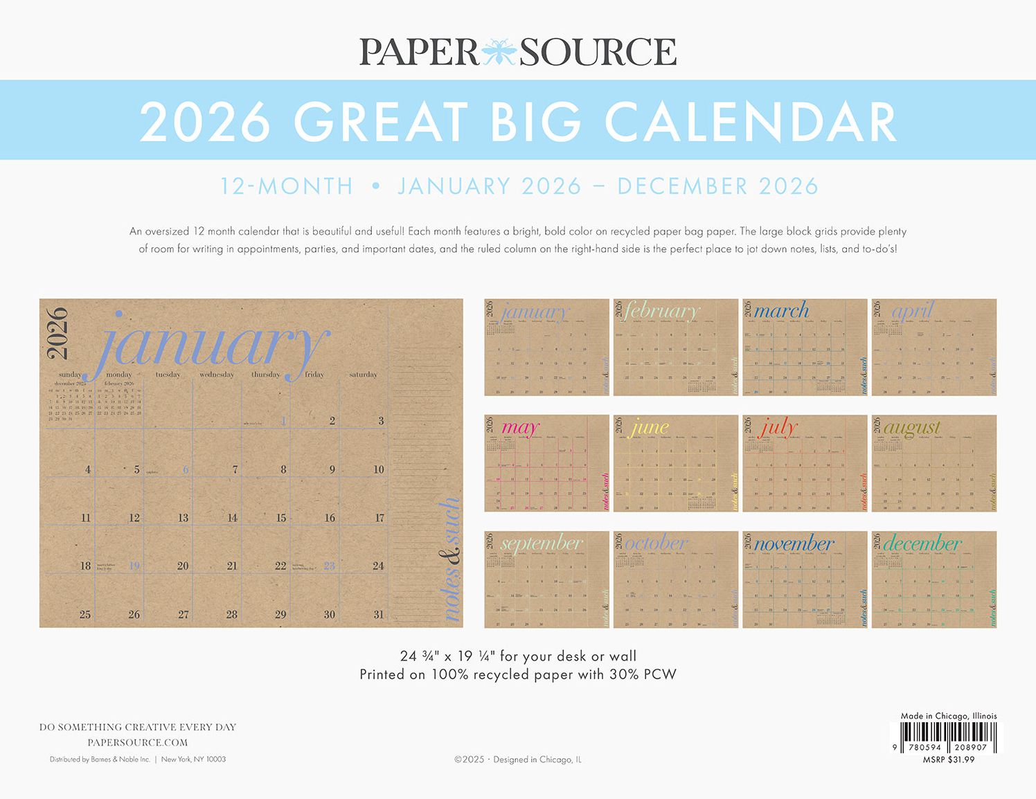When you have big plans. you need a big calendar. If that’s you then this is the perfect one to help you stay on top of everything. Designed by Paper Source.