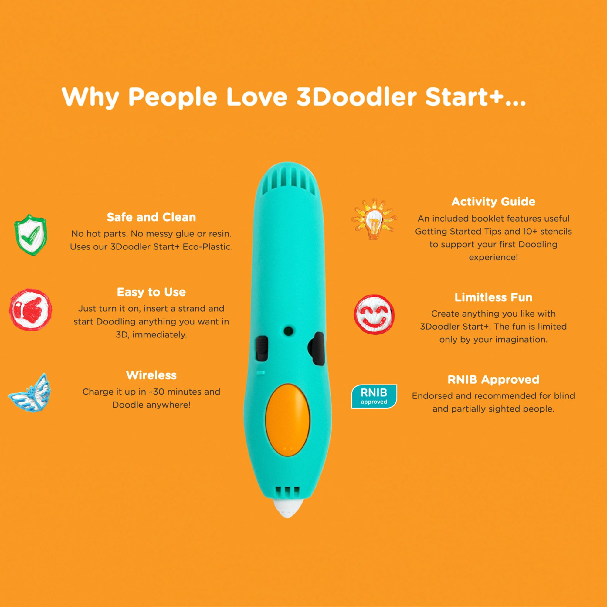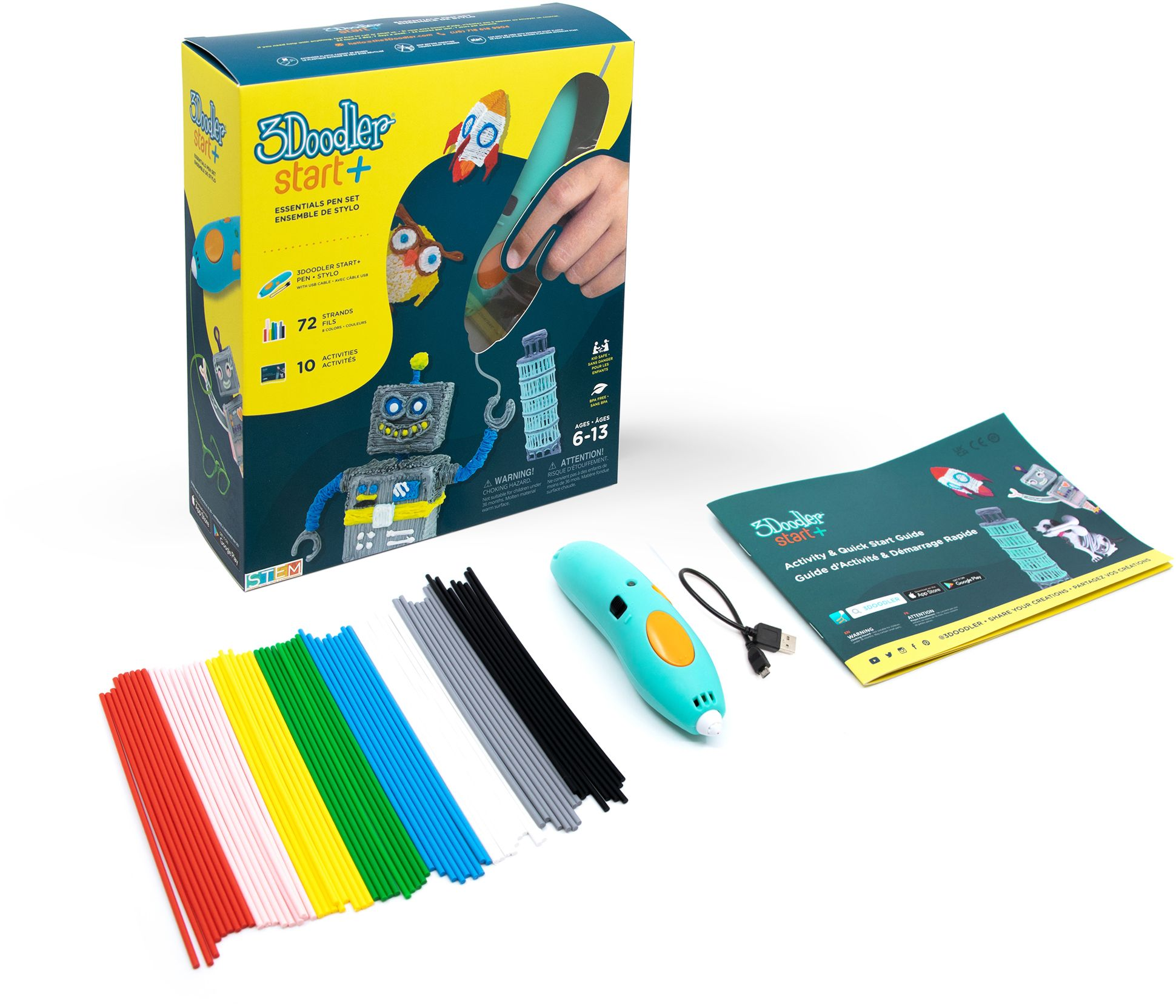 The 3Doodler Start+ Essentials 3D pen set inspires imagination with technology & design. With the simple press of a button. young learners ages 6-13. will experience that aha moment as they use their hands and minds to bring ideas to life in 3D! Kids bring ideas to life in 3D with this award-winning Pen Set.