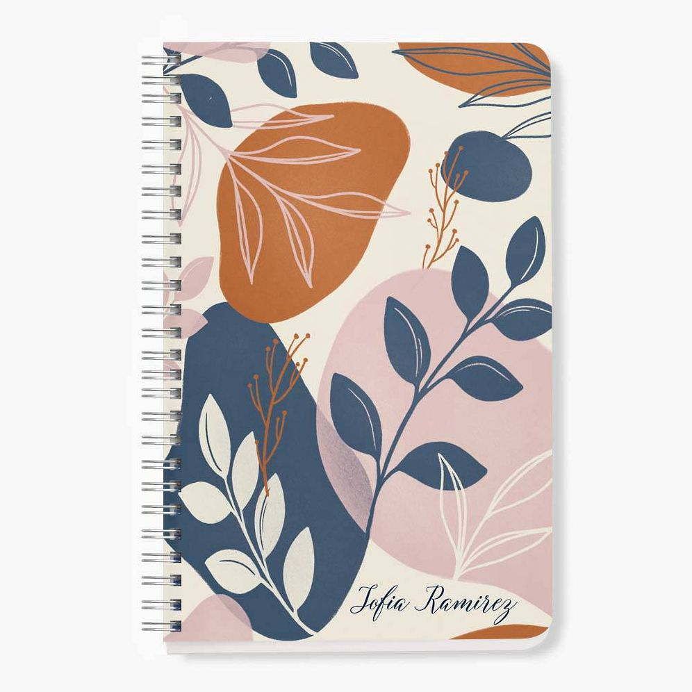 Leaves and abstract shapes pattern the front of this beautiful custom journal for a modern. hip effect. Designed by Paper Source.