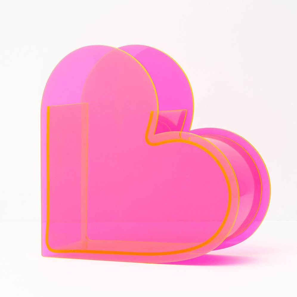 This beautiful acrylic heart shaped vase can be a great accent to any room or tabletop.