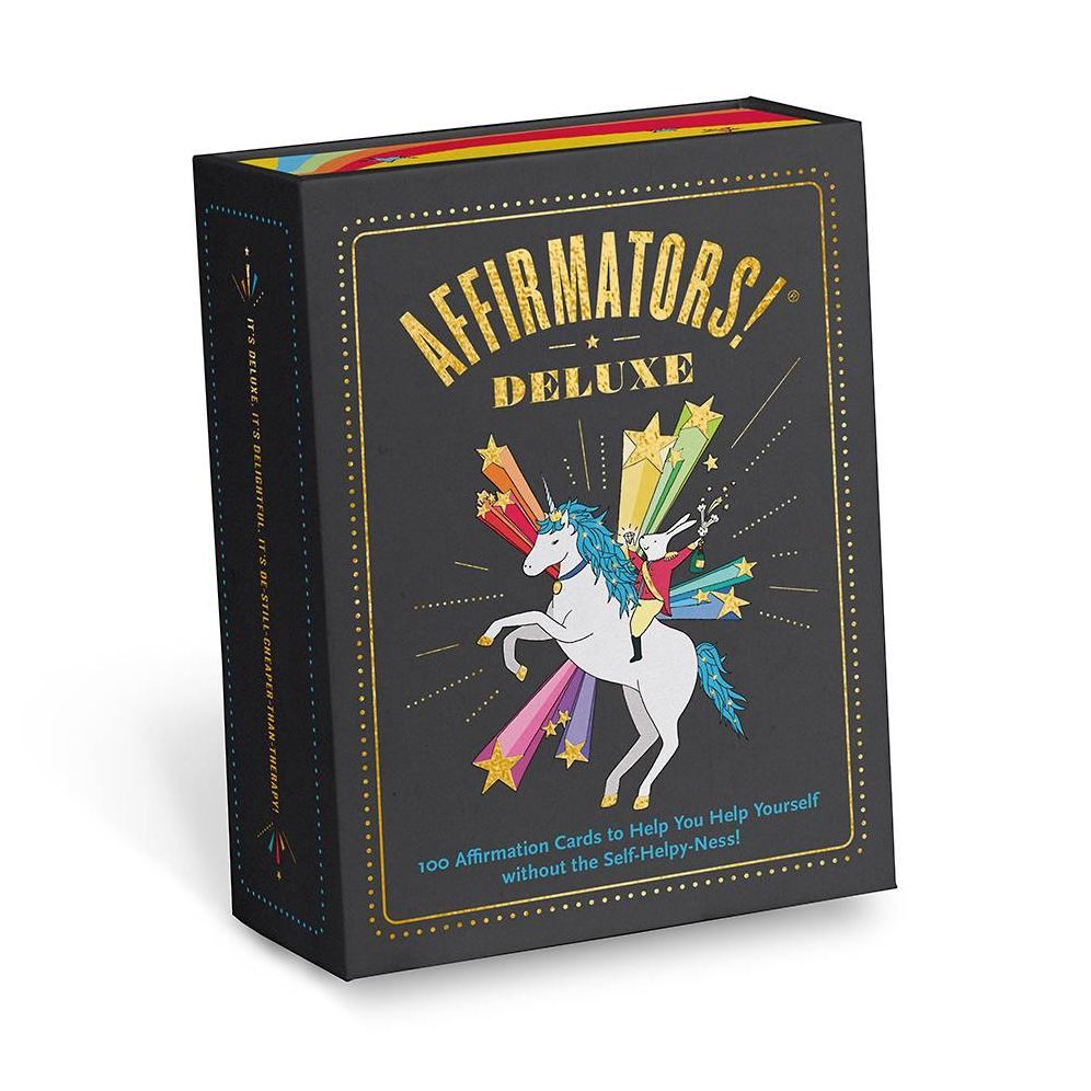 It’s new! It’s classic! It’s both! Affirmators! Deluxe is Knock Knock’s version of a greatest hits album*‚Ķ 100 of Knock Knock’s favorite Affirmators! cards. gathered in one convenient (and dare we say beautiful?) box! It’s the ultimate collection of self-help without the self-helpyness—to boost you on the bad days and high five you on the good ones. Epiphanies not included. some introspection required.¬†*Disclaimer: this is not an album.
