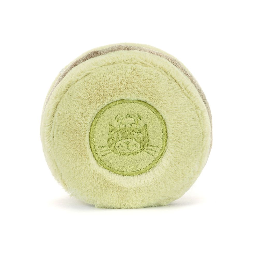 Amuseables Max Macaron is soft and sweet in green fur. With matching cordy feet. a big. stitched smile. and a velvety middle. Max has an embroidered Jellycat logo on the back for a truly luxurious treat!