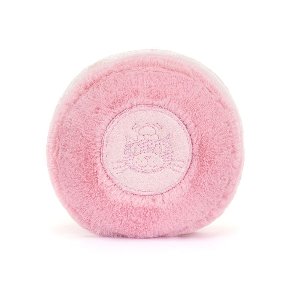 Amuseables Mia Macaron is a fruity. friendly treat in soft strawberry fur. With a velvety filling. matching cord feet. and stitched smile. Mia has an embroidered Jellycat logo on the back for a truly luxurious treat!
