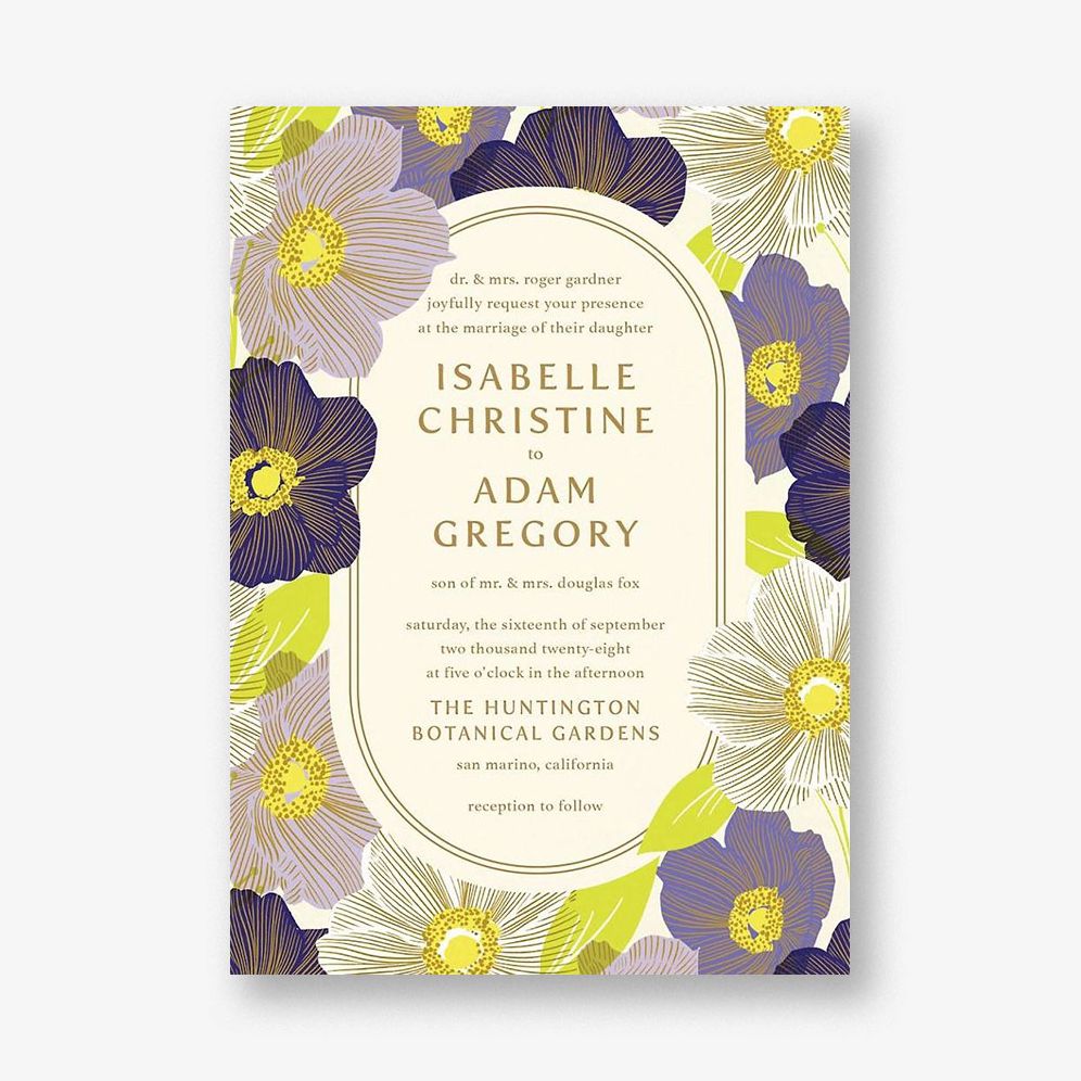 Immerse your wedding in a vibrant celebration of love with these eye-catching invitations featuring vivid anemone flower illustrations that radiate retro charm. The dynamic color palette. available in four color ways from soft neutral to poppy bright. set the perfect vibe for an unforgettable celebration.