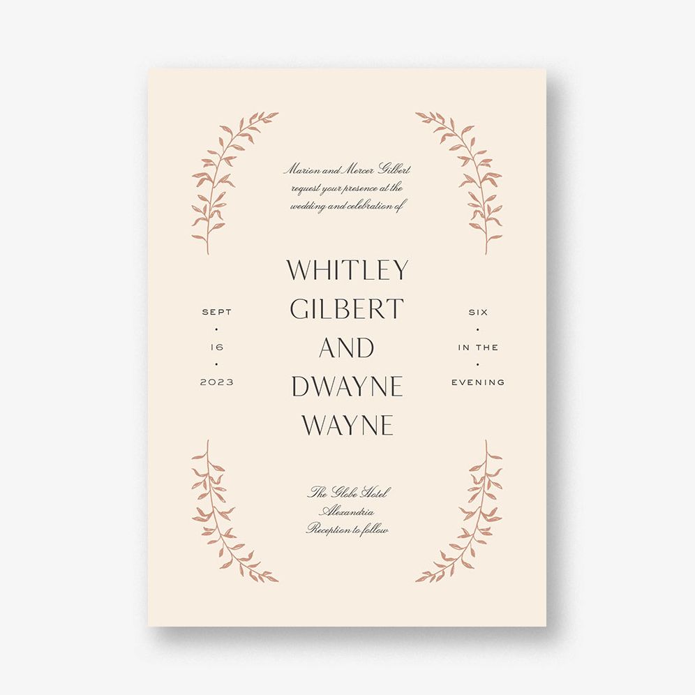 Mirrored type and greenery branches adorn this classic design by Paperless Post. Printed on Mohawk superfine white 130 lb. card stock that is soft to the touch and matches our superfine white envelopes. This paper is FSC certified. with 30% post consumer recycled content. and made using wind power. Need to send your annoucement ASAP? You can send with our partners at Paperless Post.