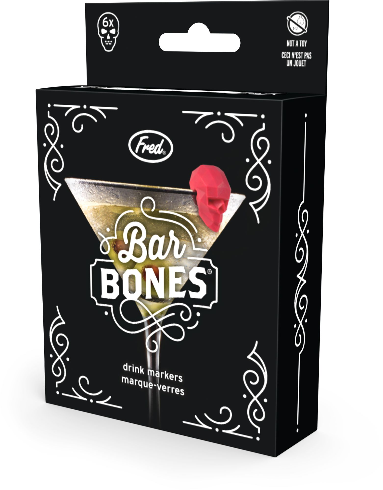 Don’t lose your head-or your drink. Stylishly geometric Bar Bones skulls help you easily identify which drink is yours.