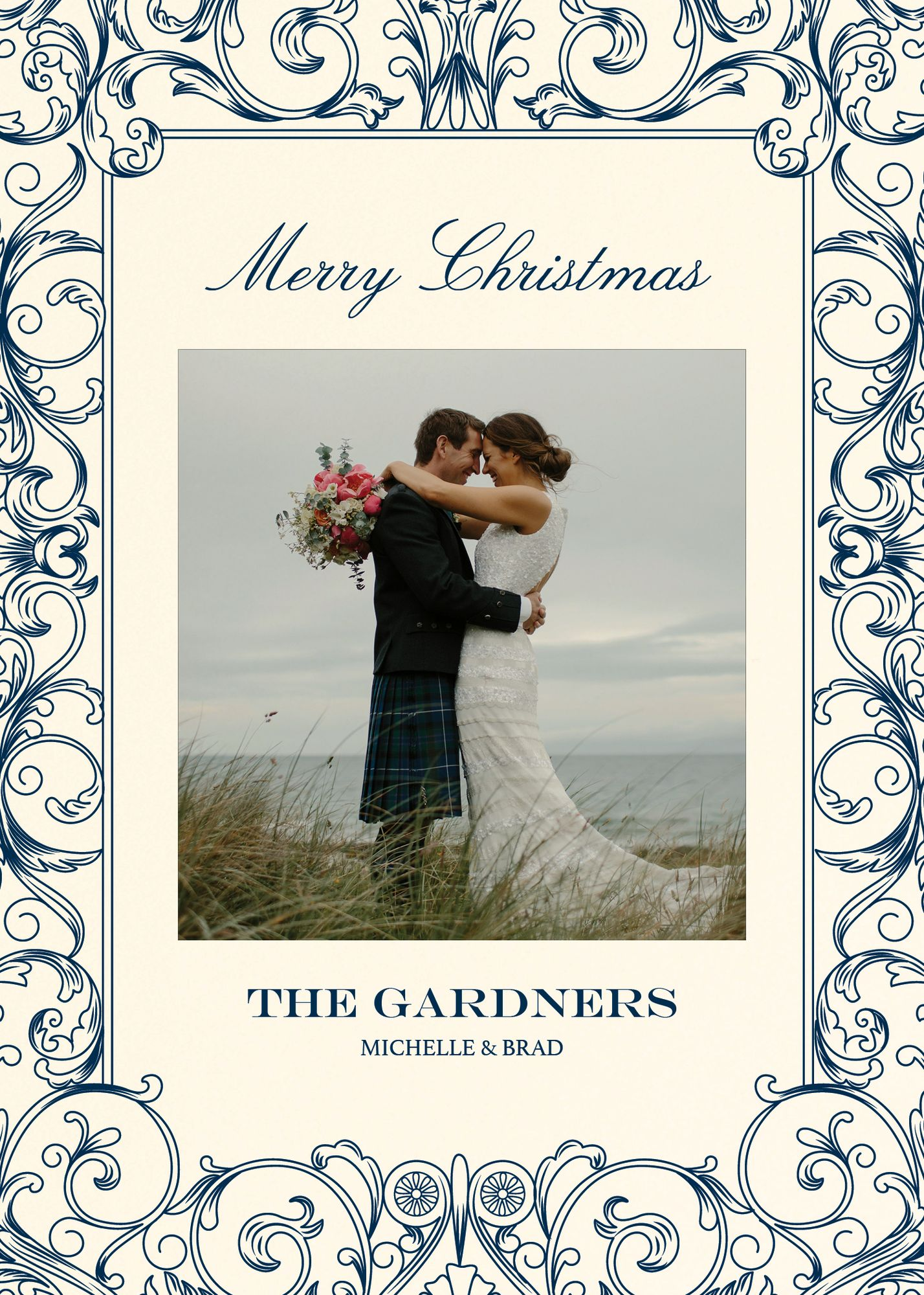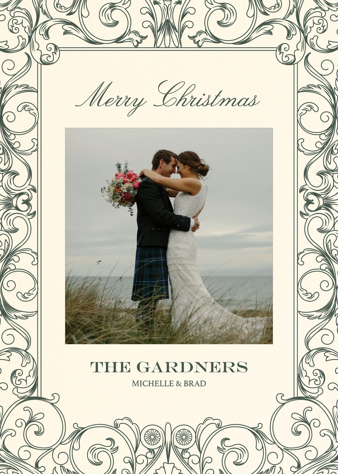 We are excited to partner with Neil Lane. celebrated jewelry designer. collector. and bridal authority to expand his collection with Paper Source into Holiday. Our in-house designers have drawn inspiration from Neil’s unique and stunning Wedding collection. Elegant florals. eye-catching foil. and ornate. luxe details will bring your vision to life. This card is sure to stun with ornate linework and luxe colors. Printed on Mohawk ultra white. 120 lb. card stock that is soft to the touch and matches our superfine white envelopes. Paper is FSC certified and made using wind power.