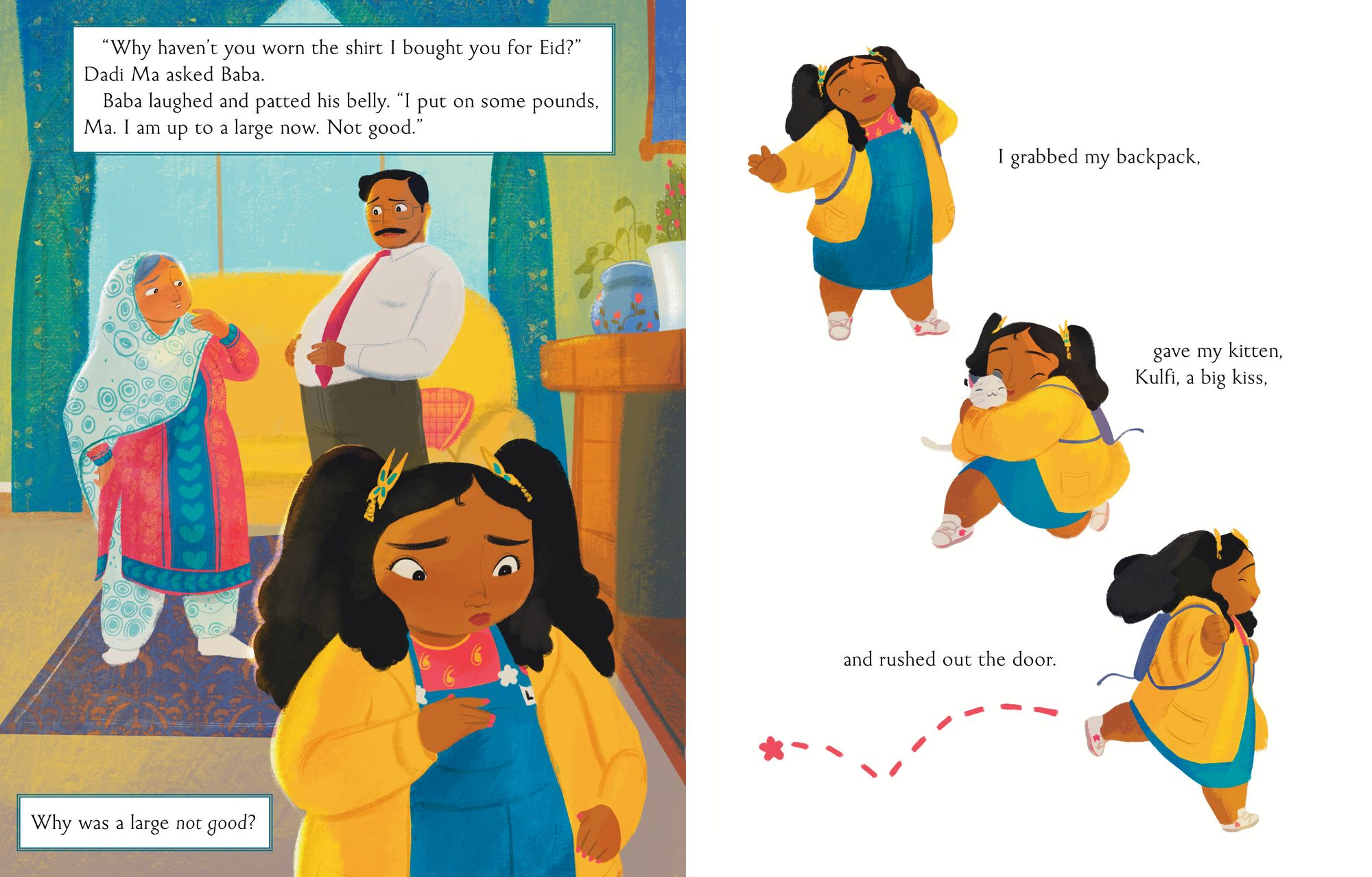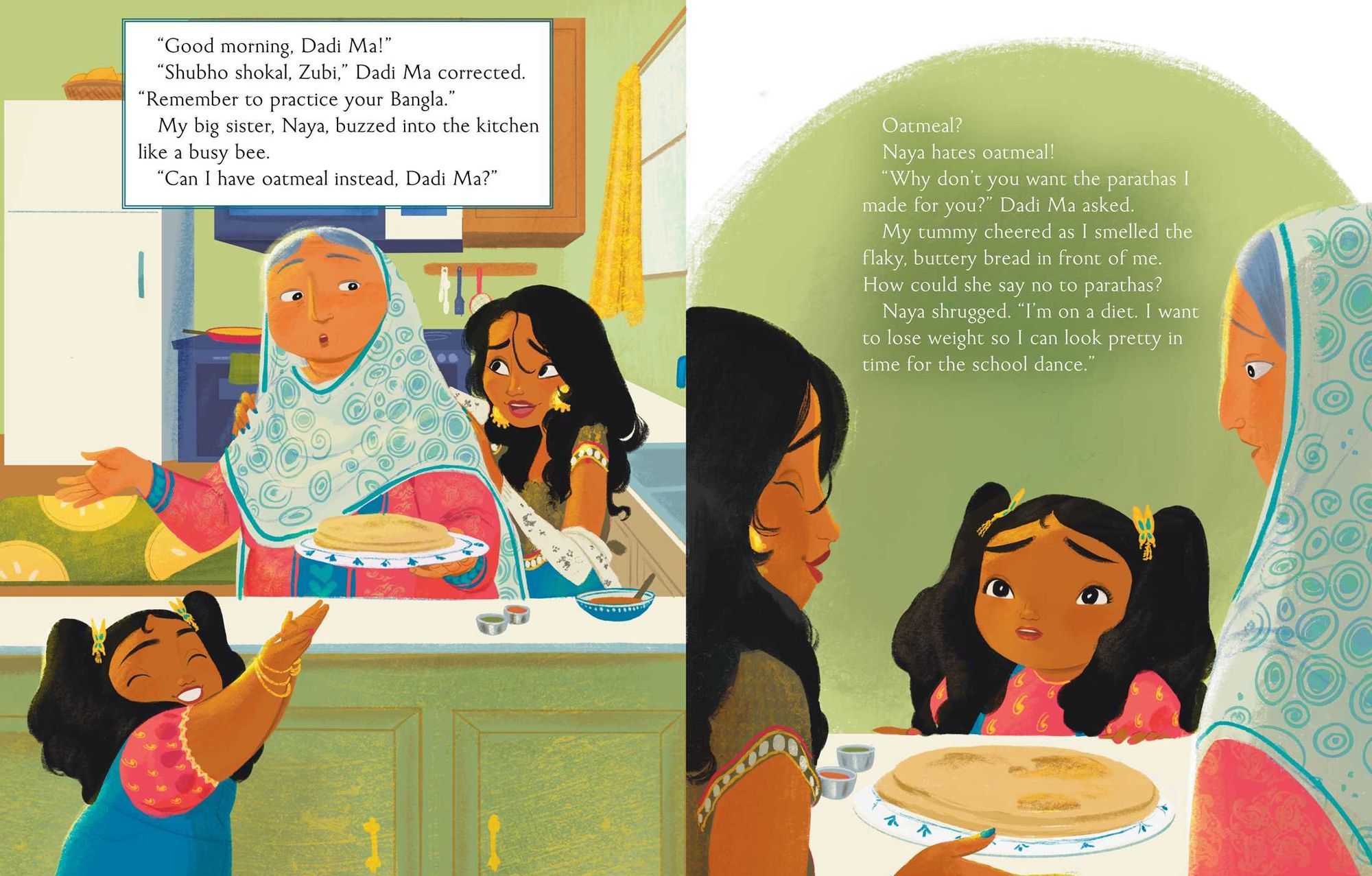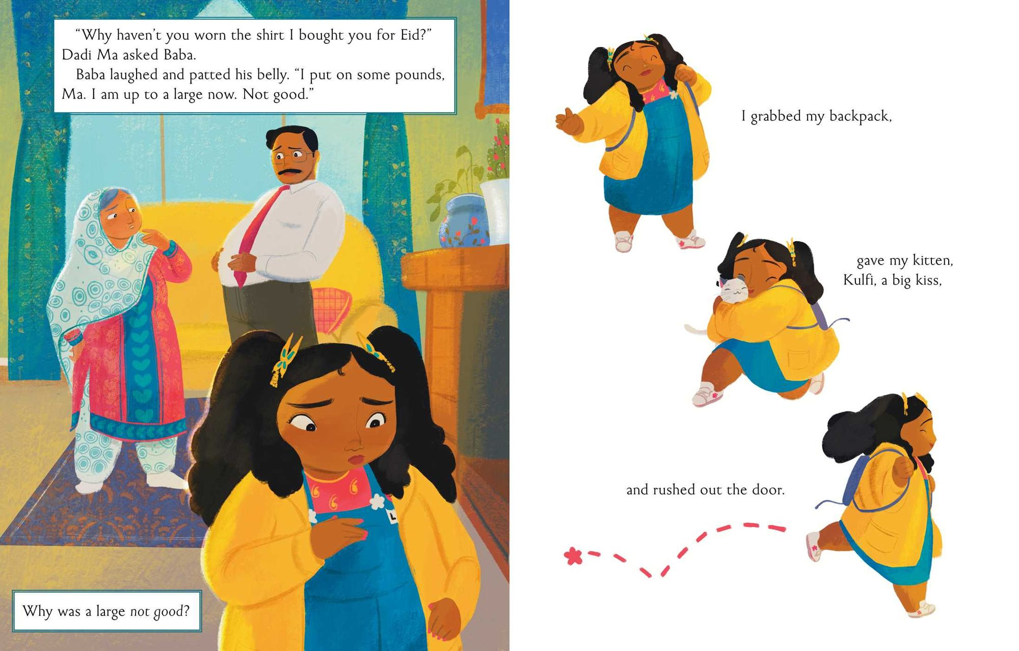 Meet Zubi: a joyful Bangladeshi girl excited about her first day of school. But when Zubi sees her mother frowning in the mirror and talking about being too big. she starts to worry about her own body and how she looks. As her day goes on. she hears more and more people being critical of each other’s and their own bodies. until her outburst over dinner leads her family to see what they’ve been doing wrong—and to help Zubi see that we can all make the world a more beautiful place by being beautifully ourselves.