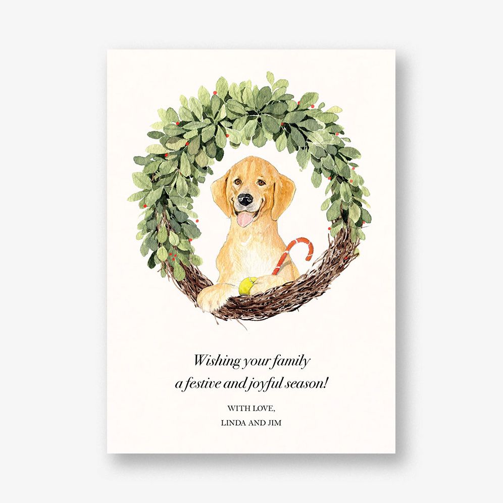 The best boy framed by a lovely wreath sends your well wishes in this design from Felix Doolittle for Paperless Post. Printed on Mohawk ultra white. 120 lb. card stock that is soft to the touch and matches our superfine white envelopes. Paper is FSC certified and made using wind power.