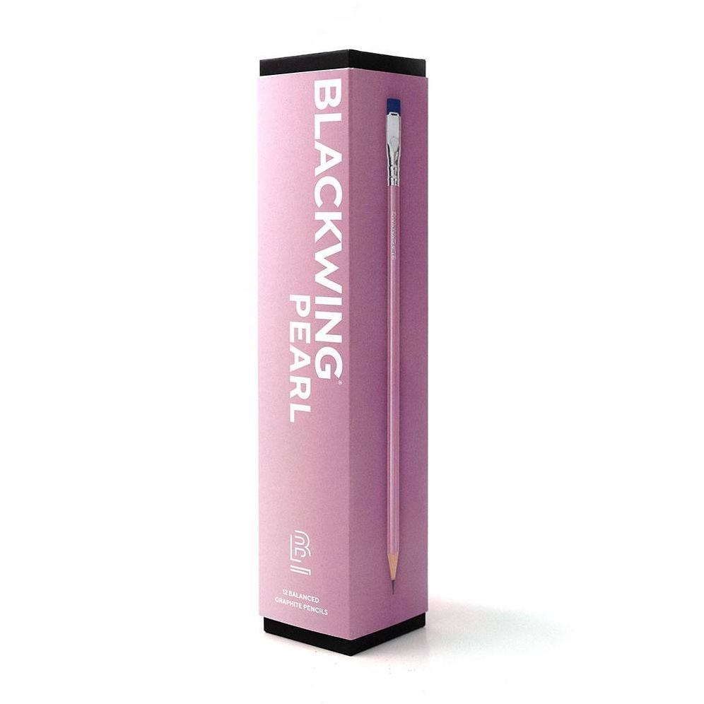 The Blackwing Pearl Pink contains Blackwing’s balanced and smooth graphite core. It handles both writing and drawing effortlessly and is a favorite among calligraphers and illustrators. Each pencil features a pearlescent pink finish. iconic square Blackwing ferrule. silver imprint. and bright blue eraser. Blackwing Pearl Pink pencils come in a 12-pack gift box that doubles as a pencil cup.