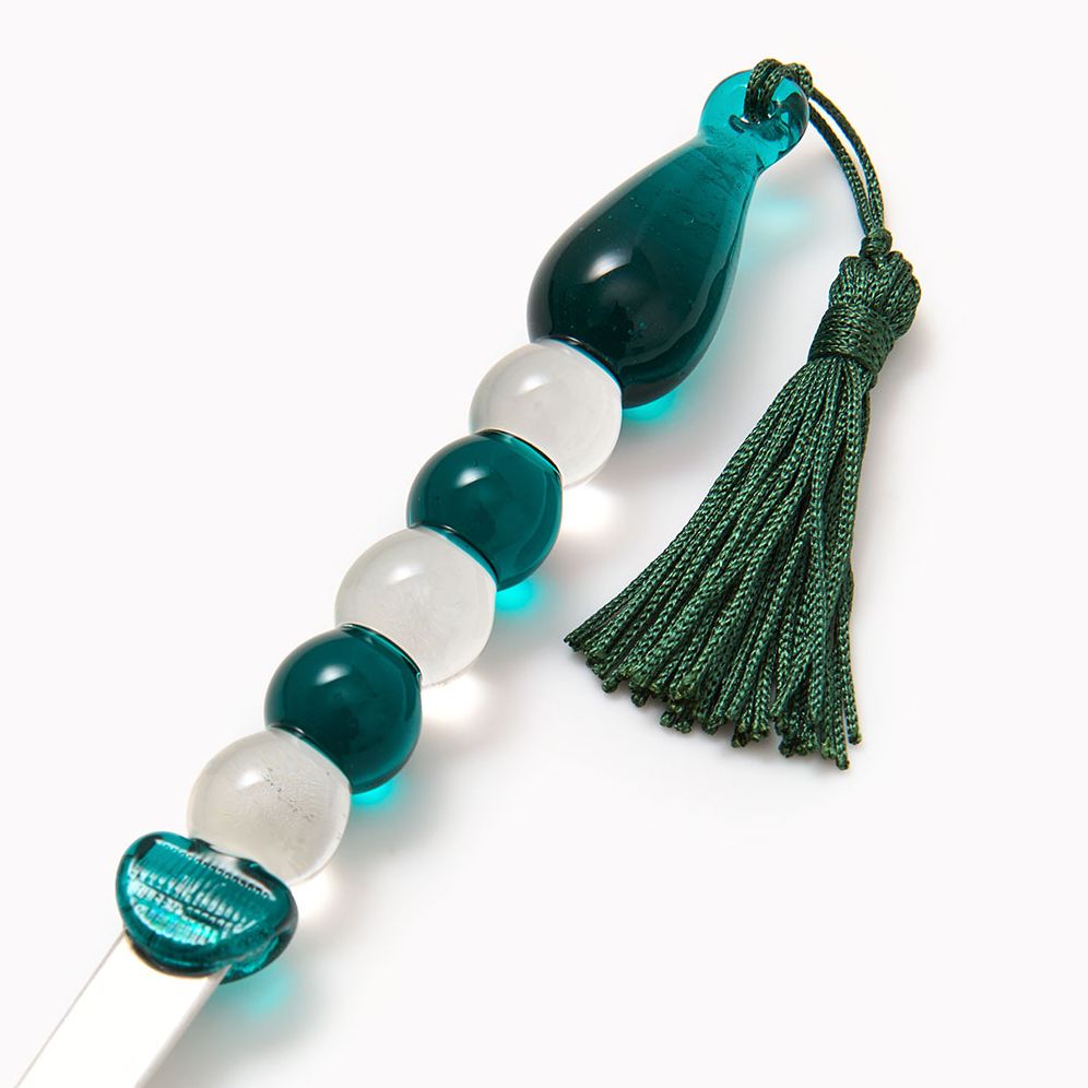 This gorgeous blown-glass letter opener features alternating colors on the handle. This is a sleek office accessory for opening mail and seasonal cards!