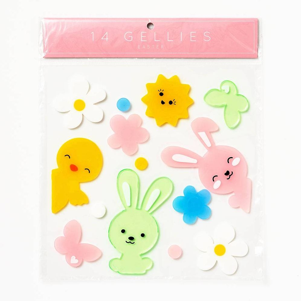 Your Easter decor is about to get colorful! These sweet chick and bunny gel clings are perfect for windows or mirrors. Includes 14 gel clings in various Easter themed characters.