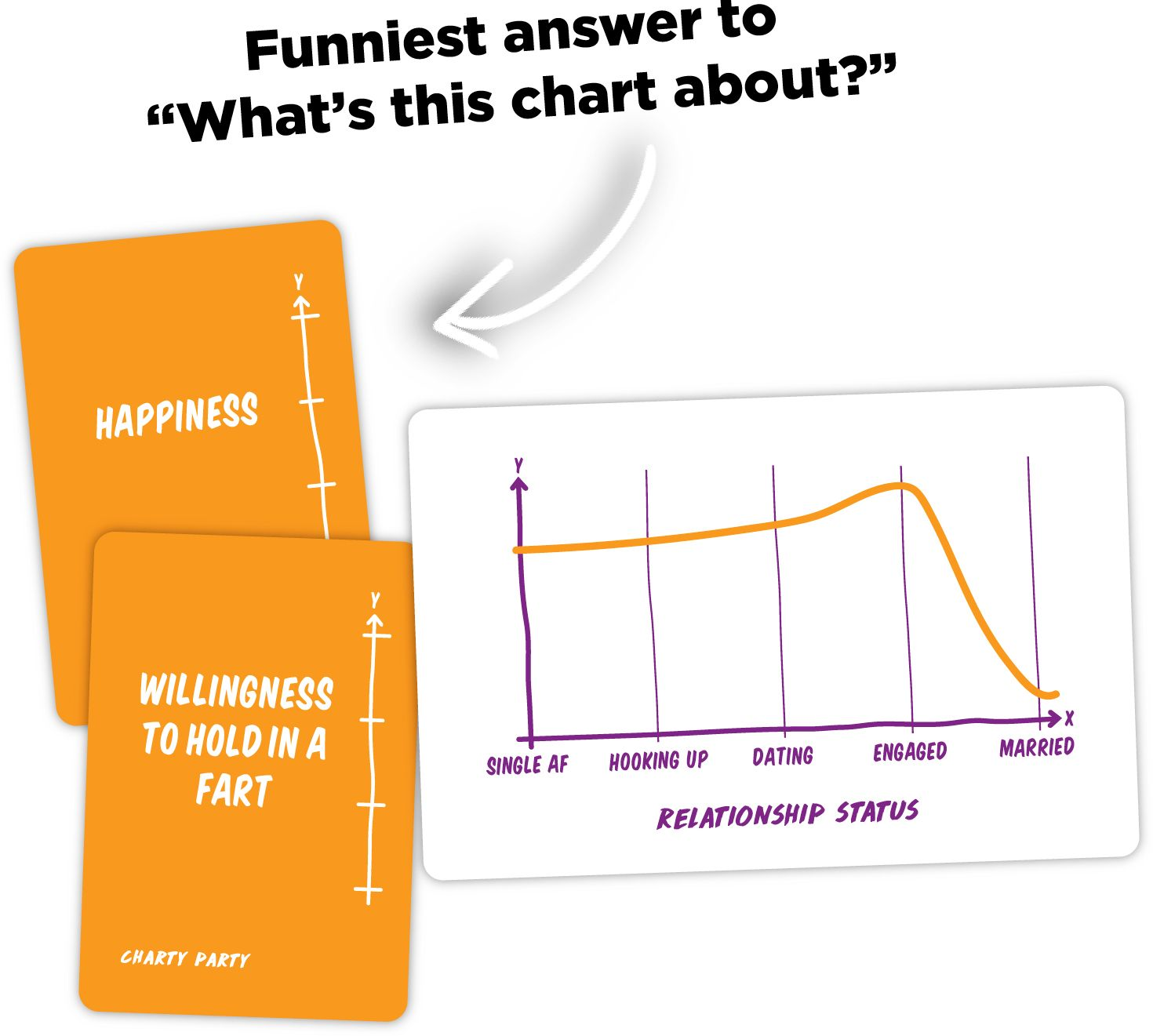 Welcome to Charty Party. the game of absurdly funny charts! Get creative as you choose the best answer to complete the y-axis on the chart!