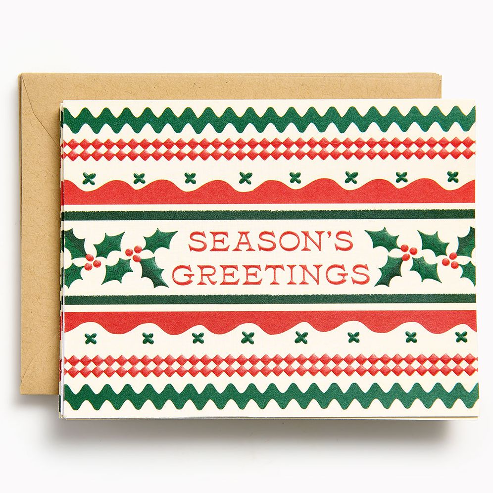 Spread some holiday cheer with this Christmas card set featuring a cozy. fun ricrac pattern! Set of 10 folded cards with envelopes. Paper Source Designed.