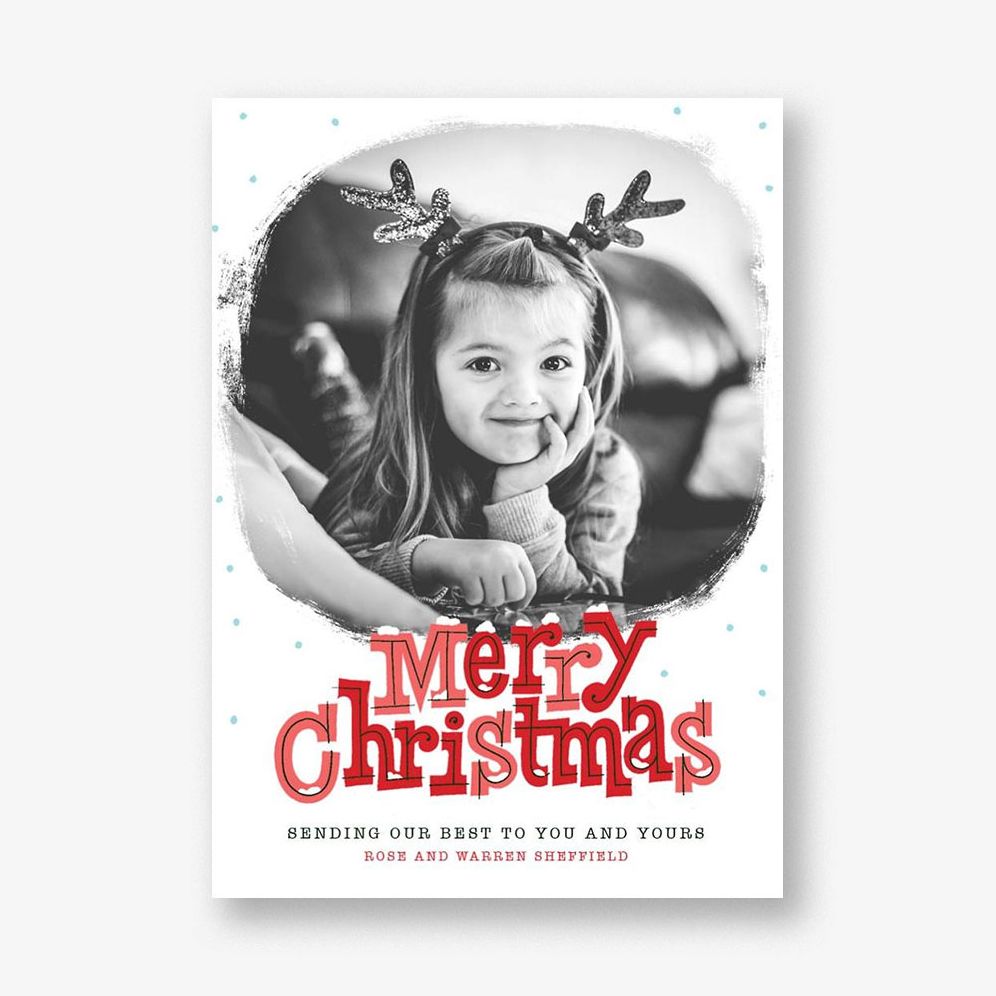 This holiday photo card by Paperless Post features an adorable fun font along with a rounded frame to feature your family photo!