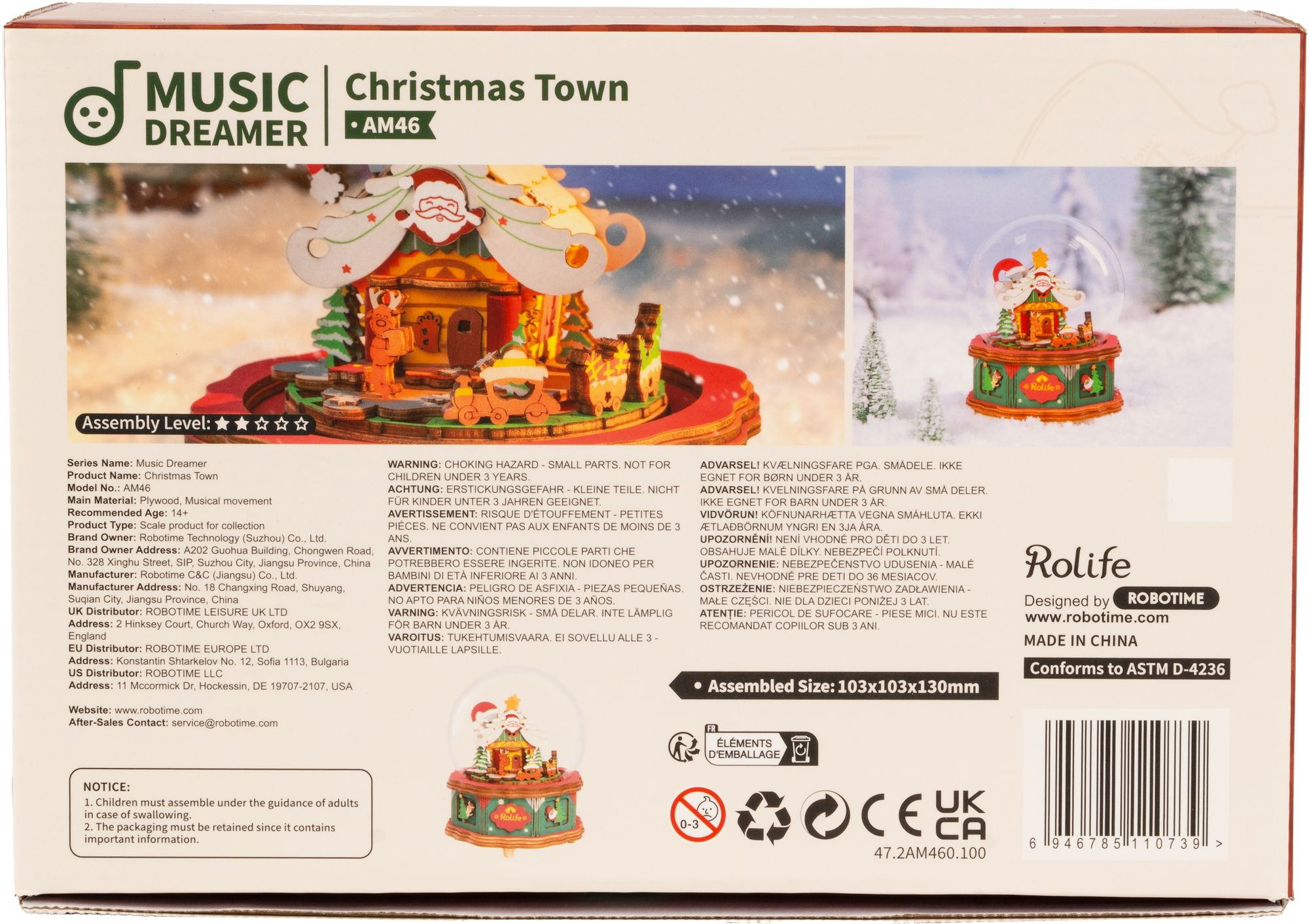 Robotime Christmas Town Music Box is an adorable 3D wooden puzzle to add to your collection and fulfill your fantasy. After assembled. rotate the music generator key. it can play Sakura.