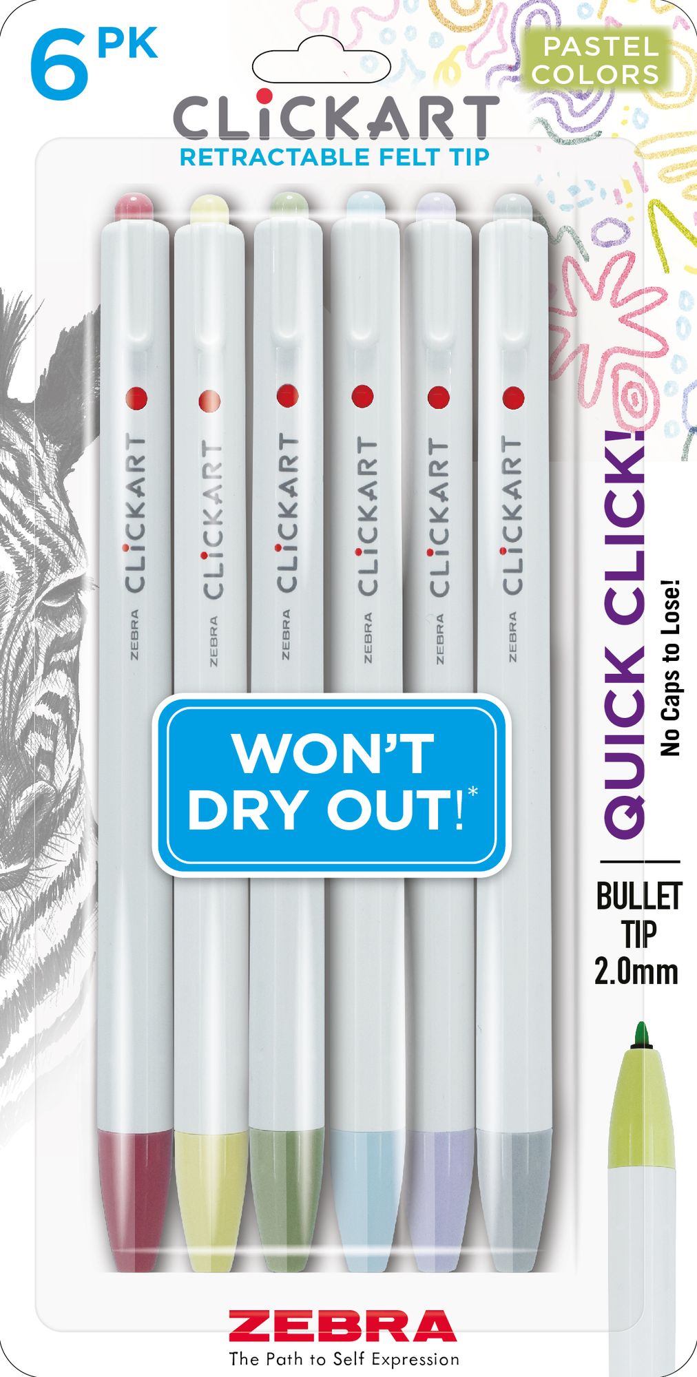 ClickArt Retractable Felt Tip Marker Mild Assorted 6pk