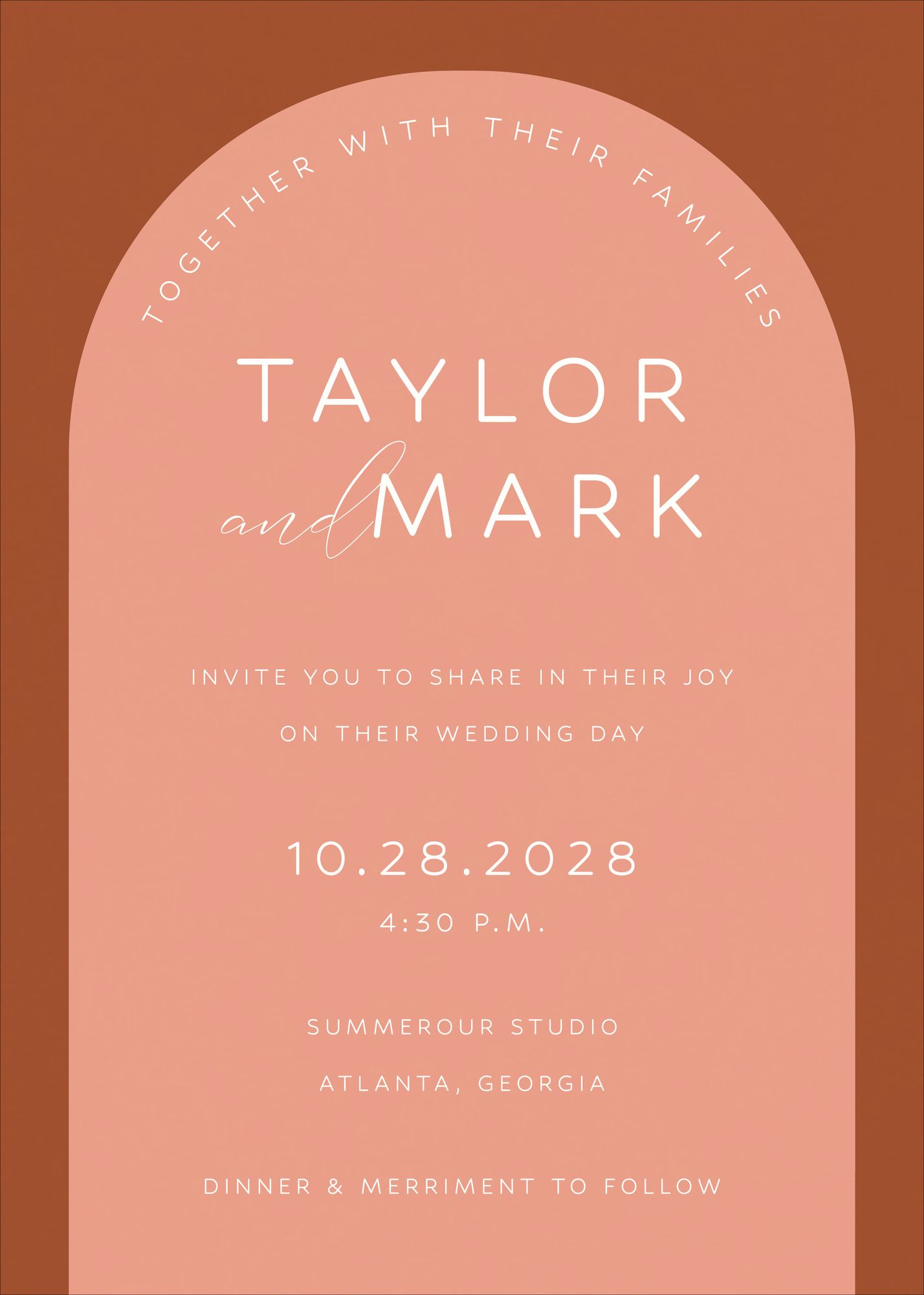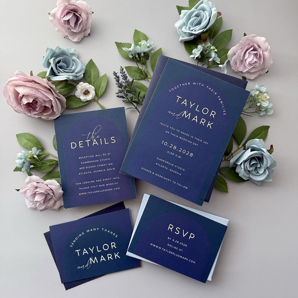 For those who love color. these invitations feature rich monochromatic tones in a modern architectural arch.
