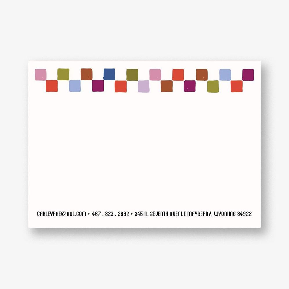 Grab a cardigan and some hot chocolate to curl up and write something lovely to someone lovely with this patchwork-inspired stationery. Printed on Mohawk superfine white 130 lb. card stock that is soft to the touch and matches our superfine white envelopes. This paper is FSC certified. with 30% post consumer recycled content. and made using wind power.