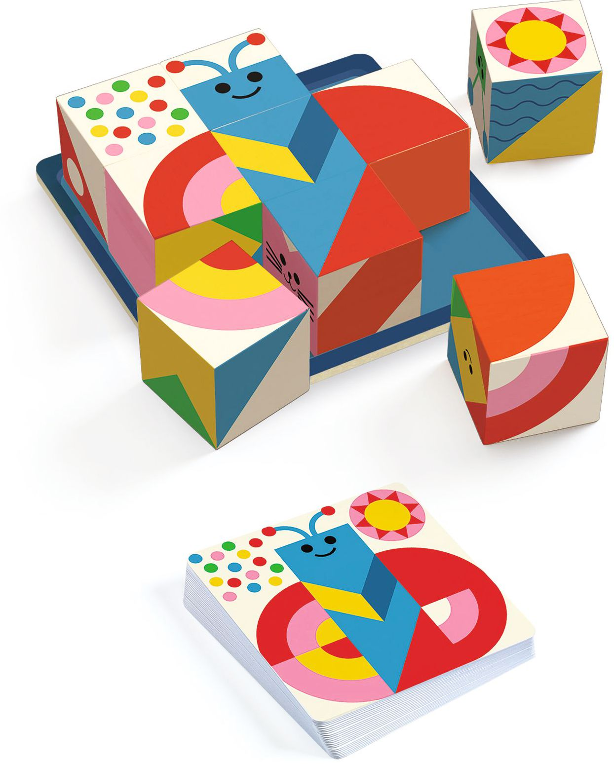 A game of observation and patience. Perfectly reconstruct the image on the challenge card using the 9 cubes!