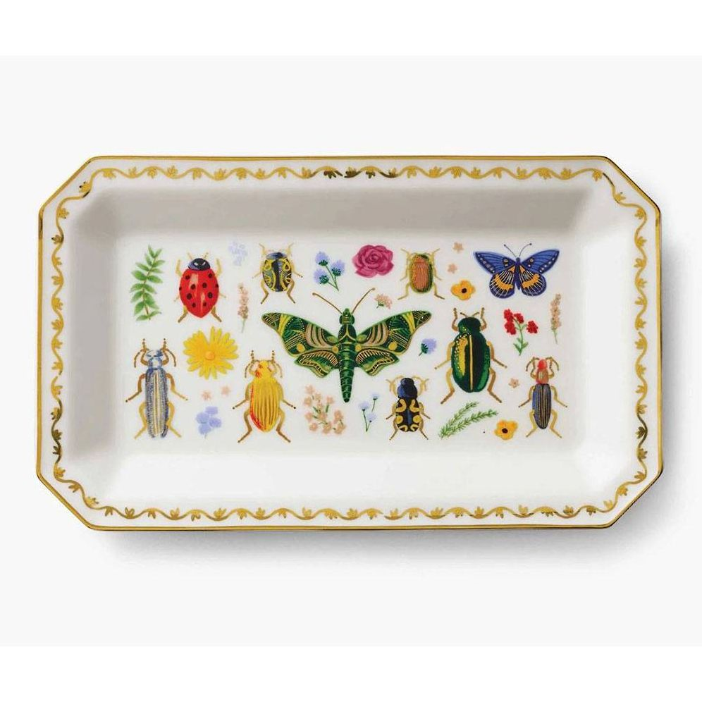 Keep track of all your trinkets with this Rifle Paper Co. large catchall tray. perfectly sized for keys or jewelry. This porcelain dish features Rifle’s Curio print and has a metallic gold rim for extra shine.