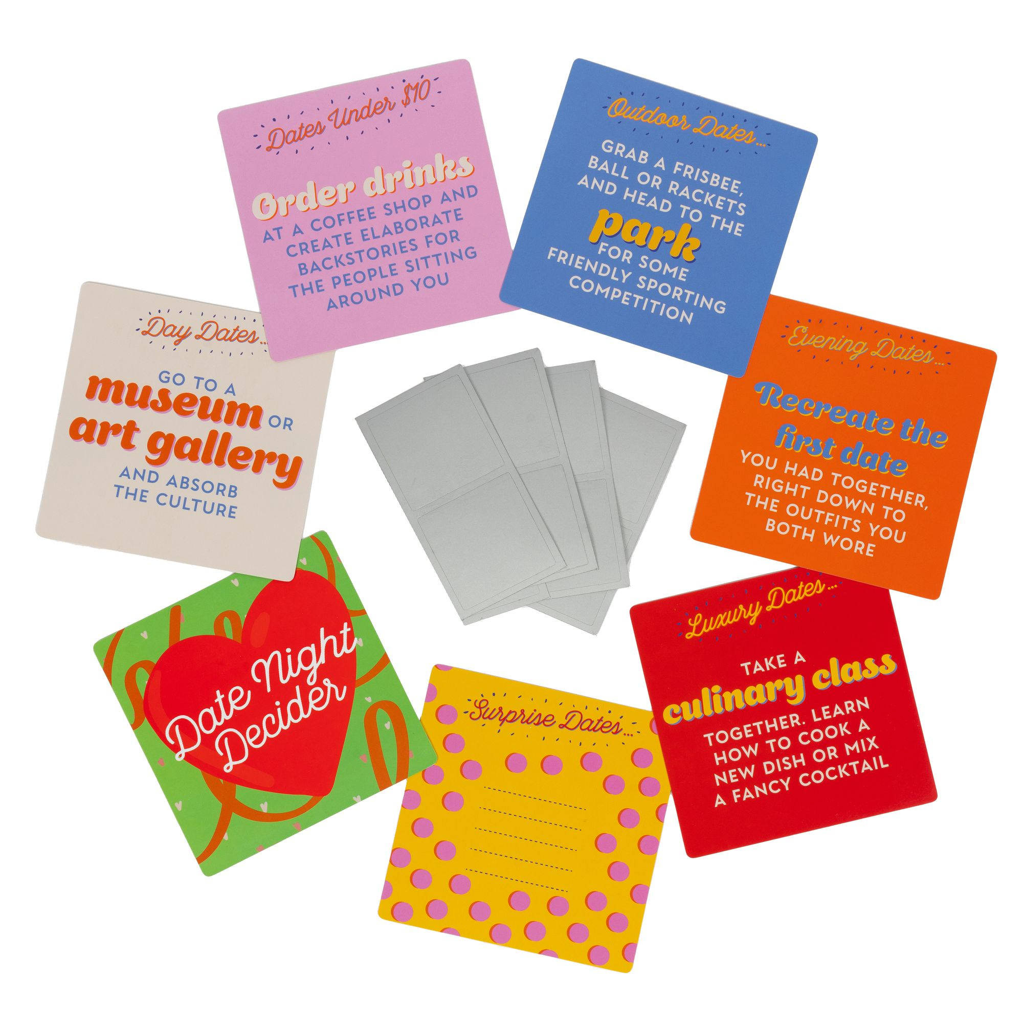 Let the cards handle the decisions with these dreamy date ideas and embrace your spontaneous side with these unique date suggestions. Roll the die and pick a card from one of the five mysterious categories. Includes five blank cards for your own creative ideas – simply write it down. apply a scratch-off sticker and surprise your sweetheart.