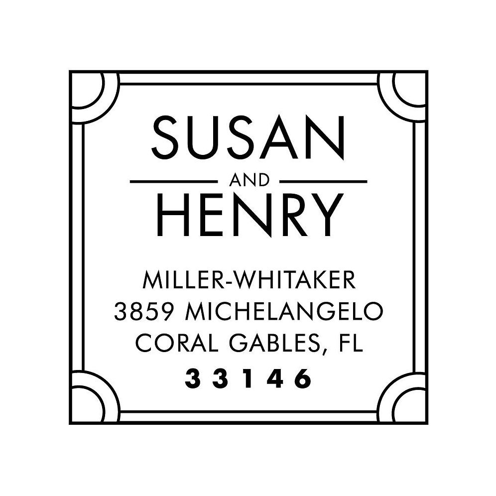 Your stamp plate will be produced with the capitalization and font shown in the sample.