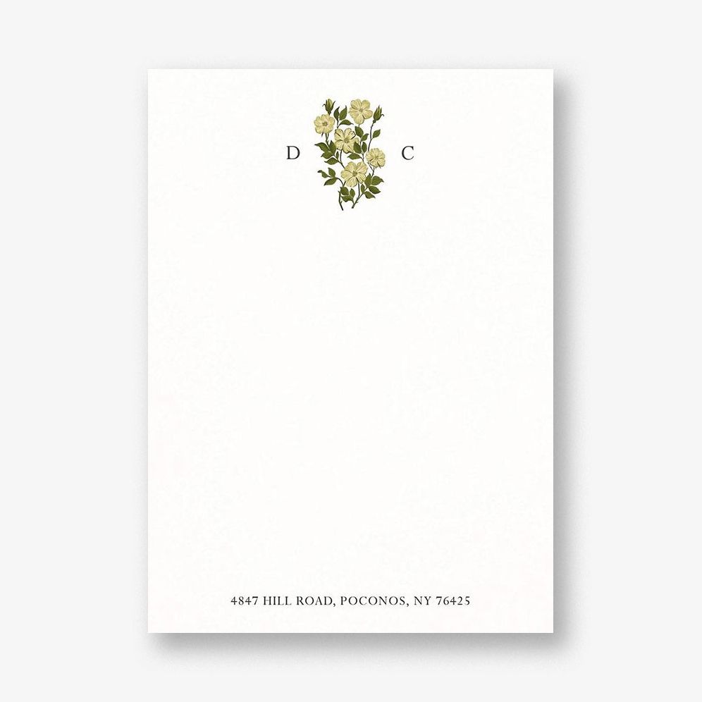 Bring the garden party to your desk with a boquet of delicate botanical illustrations featuring Poppies. Wild Roses. Irises. or Peonies. Printed on Mohawk superfine white 130 lb. card stock that is soft to the touch and matches our superfine white envelopes. This paper is FSC certified. with 30% post consumer recycled content. and made using wind power.