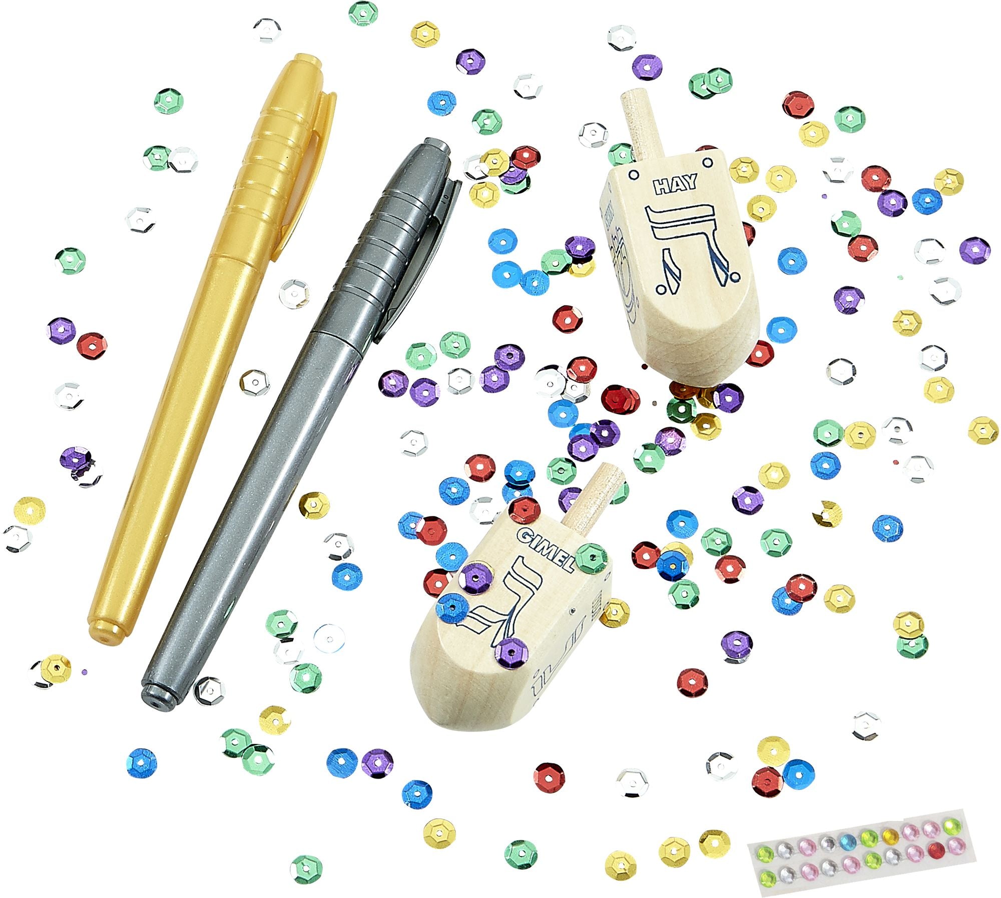 Chanukah is all about Dreidels. and this fun craft enables children to put their unique and imaginative stamp on theirs. Includes 2 wood dreidels. markers and everything needed to help kids put their own spin on their dreidels.