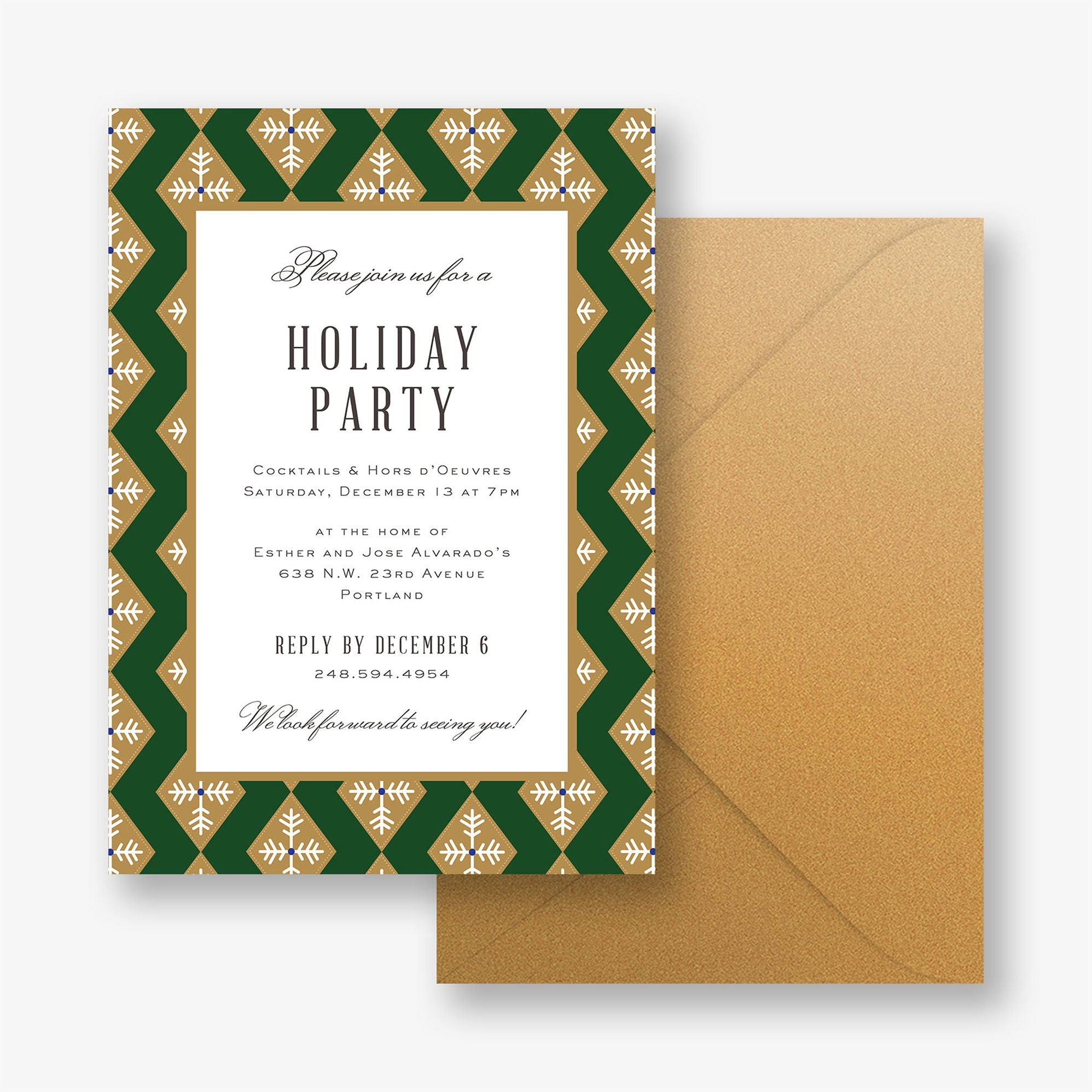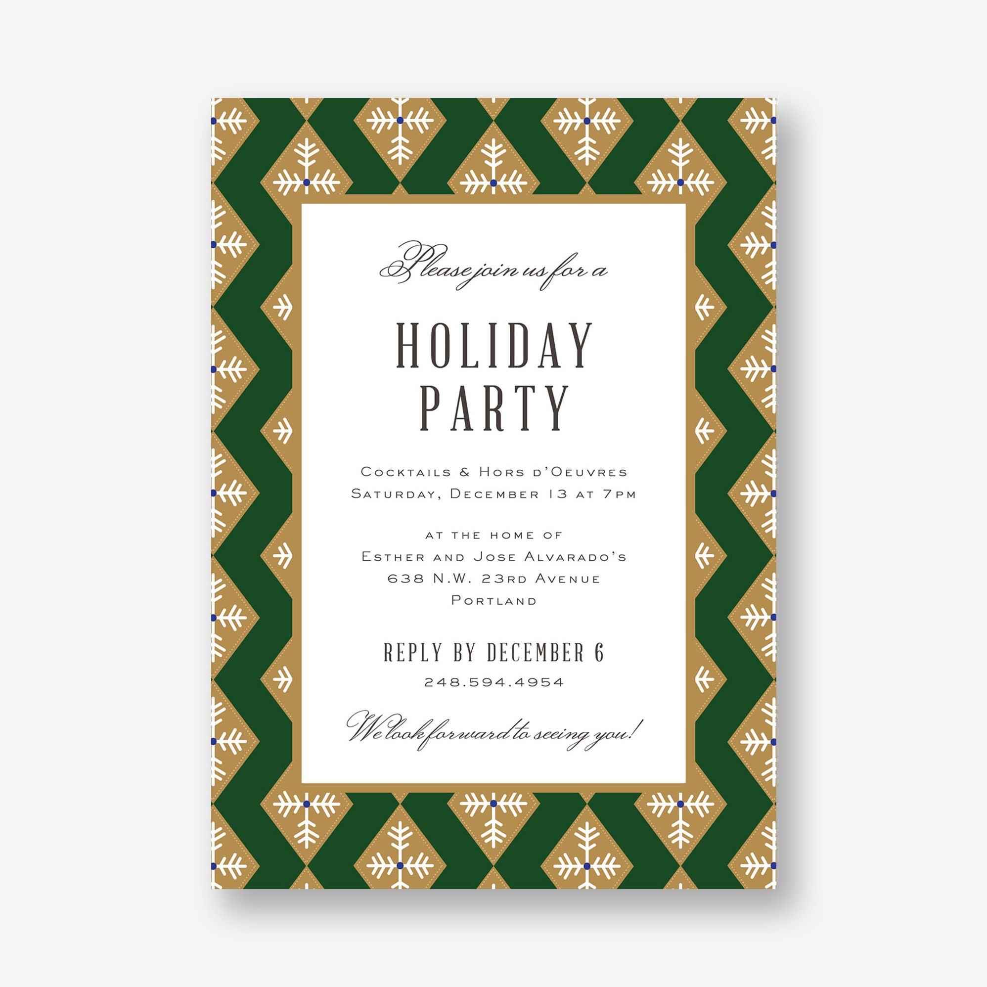 Featuring delicate snowflake accents in an eye-catching diamond pattern. inspired by a piece from Neil Lane’s personal vintage jewelry collection. this invite is perfect for festive gatherings filled with sparkle and cheer.