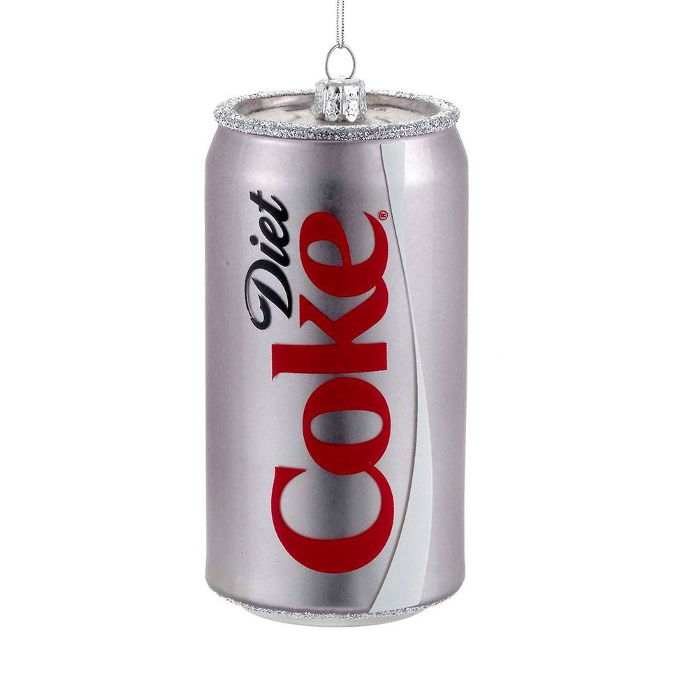 This glass 4.75 Diet Coca-Cola® can ornament is a fun. unique way to add to the decor of your Christmas tree. This ornament very closely resembles an actual can of Diet Coca-Cola®. from its trademark silver color to its black and red lettering.