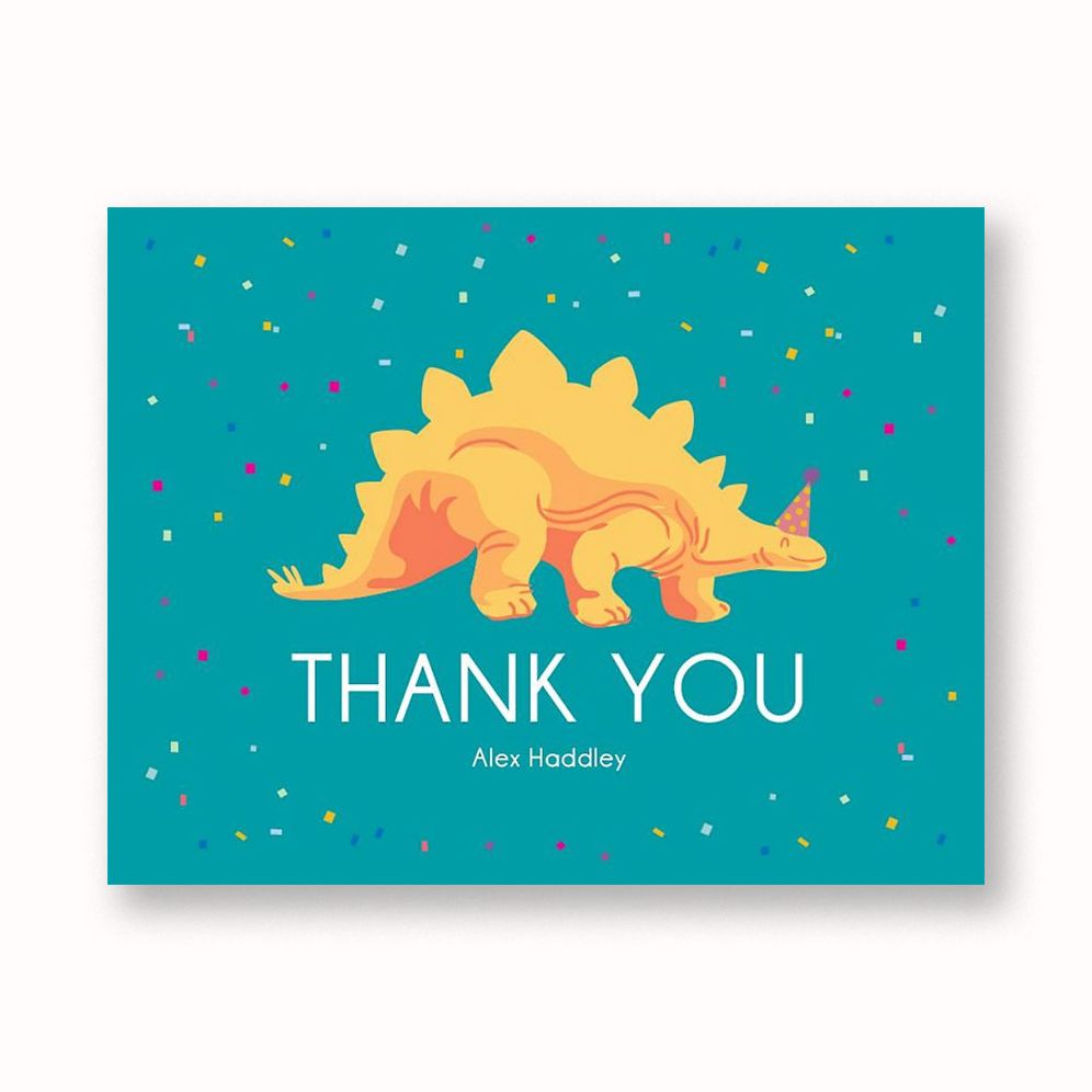 Let them know how dinomite you think they are with these custom thank you notes. Design features a sweet stegosaurus against a blue backdrop.