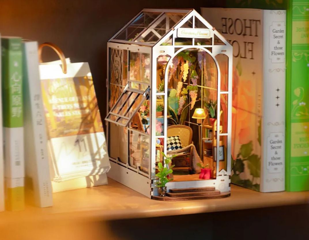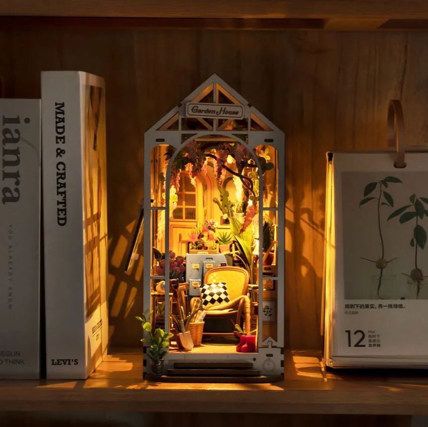 Drawing inspiration from an idyllic day awakened by the gentle sunlight and the presence of blossoming flowers. the Robotime-Rolife Garden House book nook encapsulates the essence of that tranquil experience.