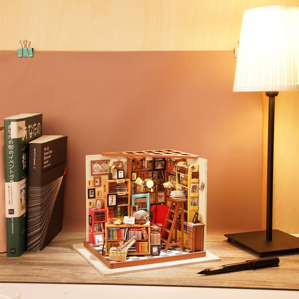 Art. life. philosophy. novel. You can find all kinds of books in this Sam’s Study Library DIY miniature house kit DG102. If you love DIY and crafting. then this adorable library miniature dollhouse will impress you. Build all the mini pieces together and create a fabulous library scene with your own hands.