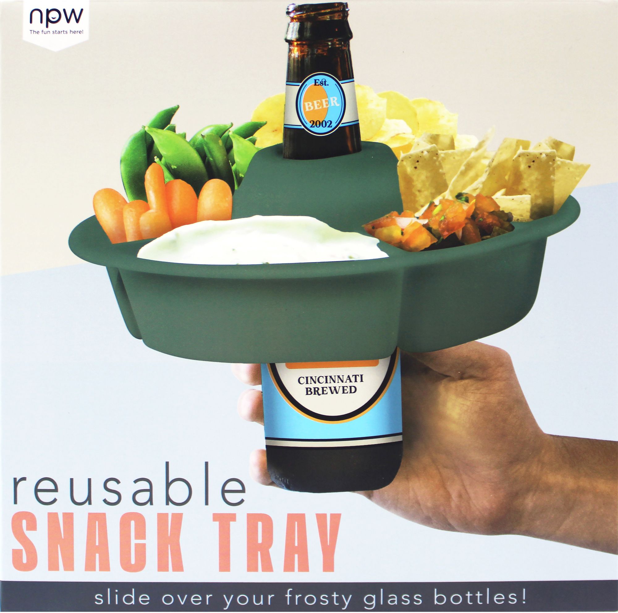 Transform your beer bottle into the perfect party accessory with this personal snack tray. Designed to fit snugly over your bottle. its ideal for holding chips. nuts or your favorite bite-sized treats – so you can snack and sip with ease. Hand wash only.