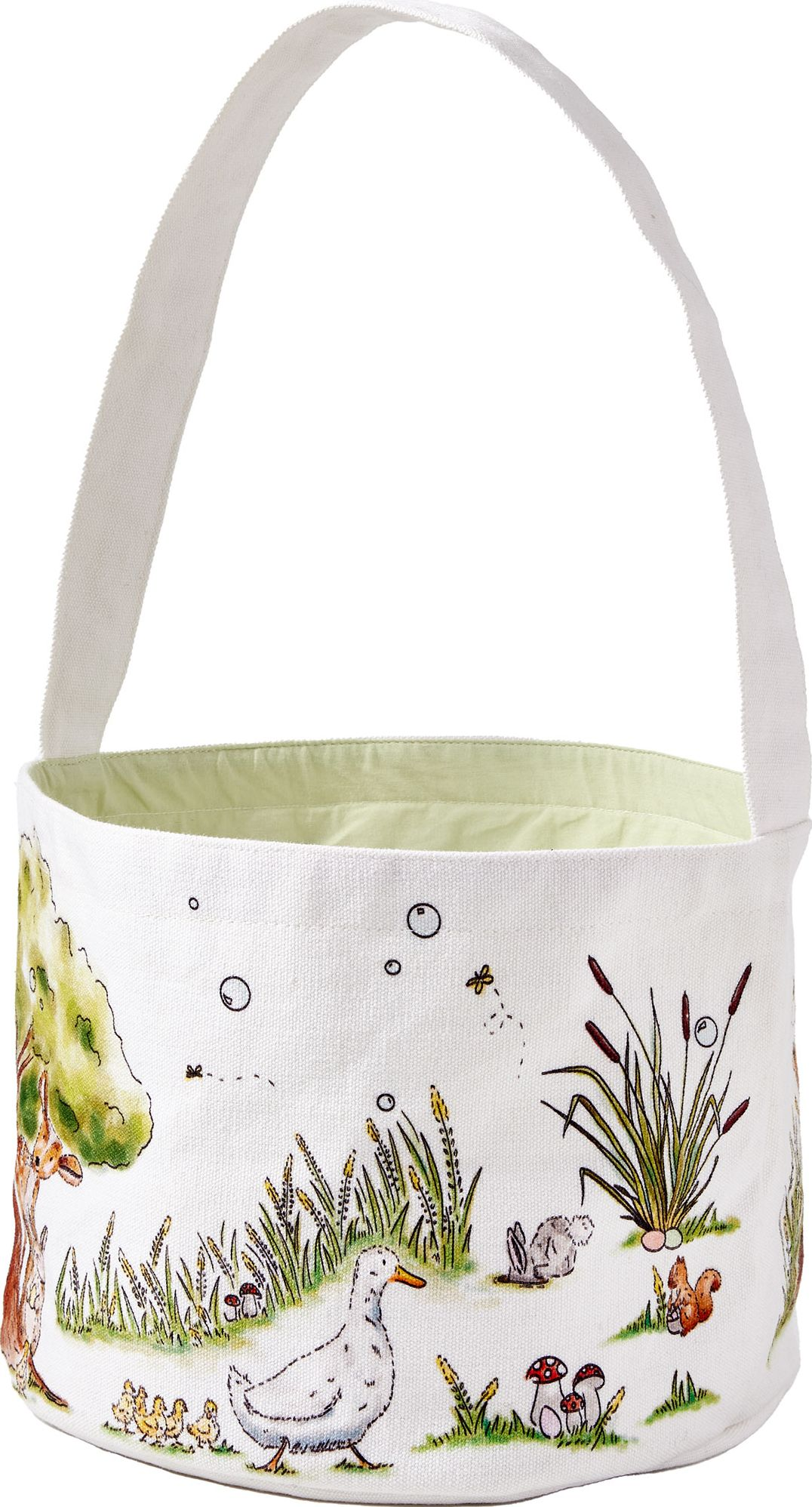 Easter Basket showcasing an outdoor whimsical artwork scene in printed cotton canvas material.
