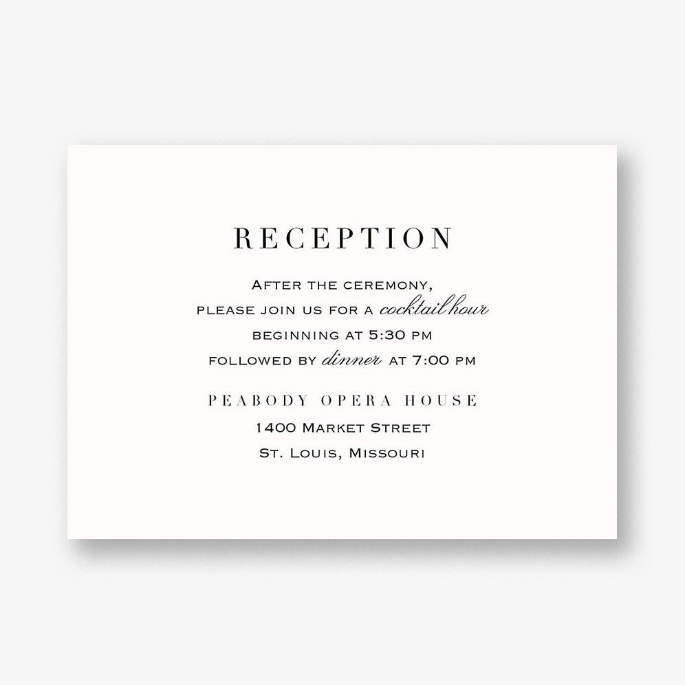 This simple information card complements the rest of the Fineline Foil suite of wedding cards. designed here at Paper Source. Printed on Mohawk superfine white 130 lb. card stock that is soft to the touch and matches our superfine white envelopes. Paper is FSC certified and made using wind power.