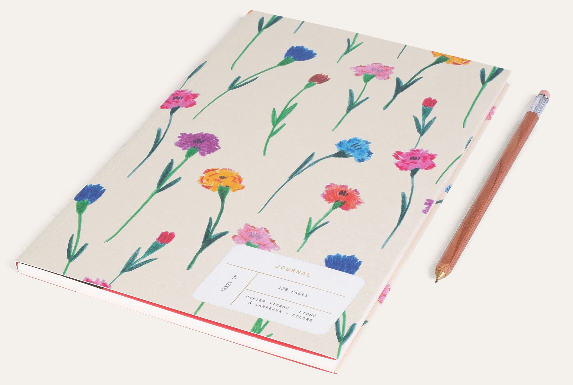 Tidy on your desk or slipped into your bag. our journal will quickly become your most faithful companion! With its 64 lined pages. 32 squared pages and 32 plain pages. all your writing will be well kept and above all well organized. Floral decor in soft colours. our Fiore pattern will adorn your desk with delicacy.