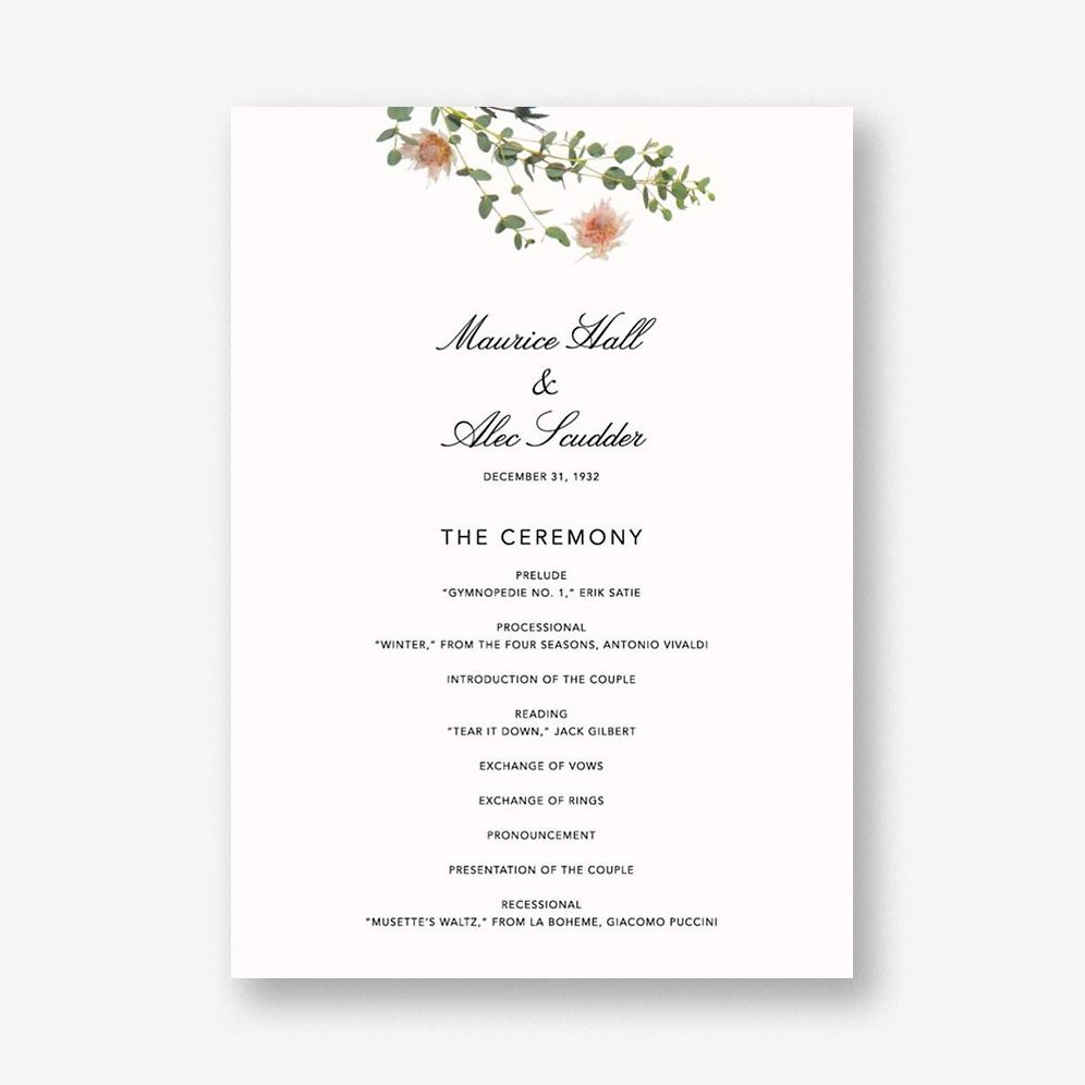 Floral arrangements are what make weddings even more magical than they already are in essence. Inform all your loved ones on your big day with this floral wedding program by Paperless Post. Printed on Mohawk superfine white 130 lb. card stock that is soft to the touch and matches our superfine white envelopes. Paper is FSC certified and made using wind power.