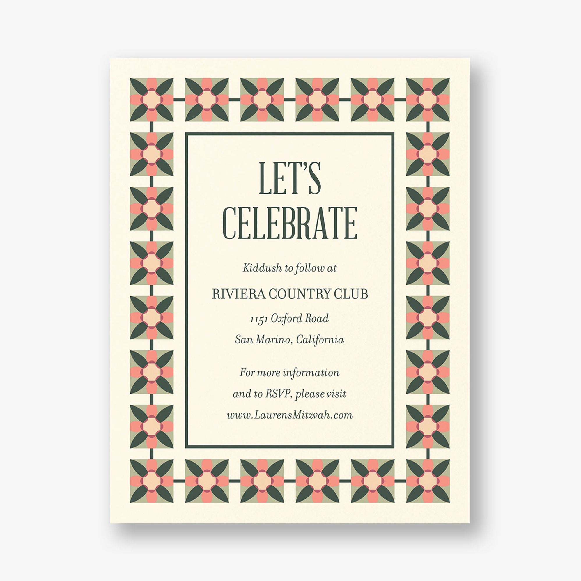 Floral Tile Bat Mitzvah Invitation
