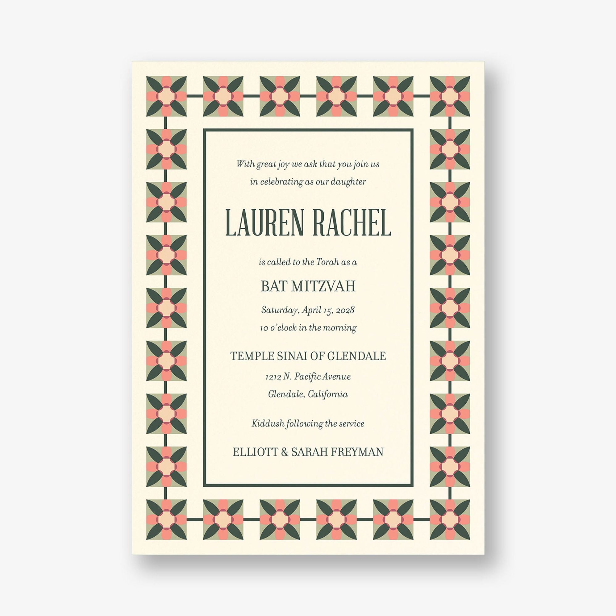 Floral Tile Bat Mitzvah Invitation