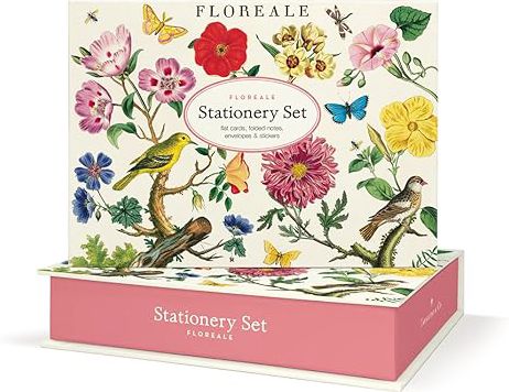 Stationery Set includes 8 flat cards with envelopes. 8 folded notes with envelopes. and 4 sheets of stickers printed on our signature archival label stock. Featuring vintage images from the Cavallini archives. this writing set is perfect for everyday correspondence.