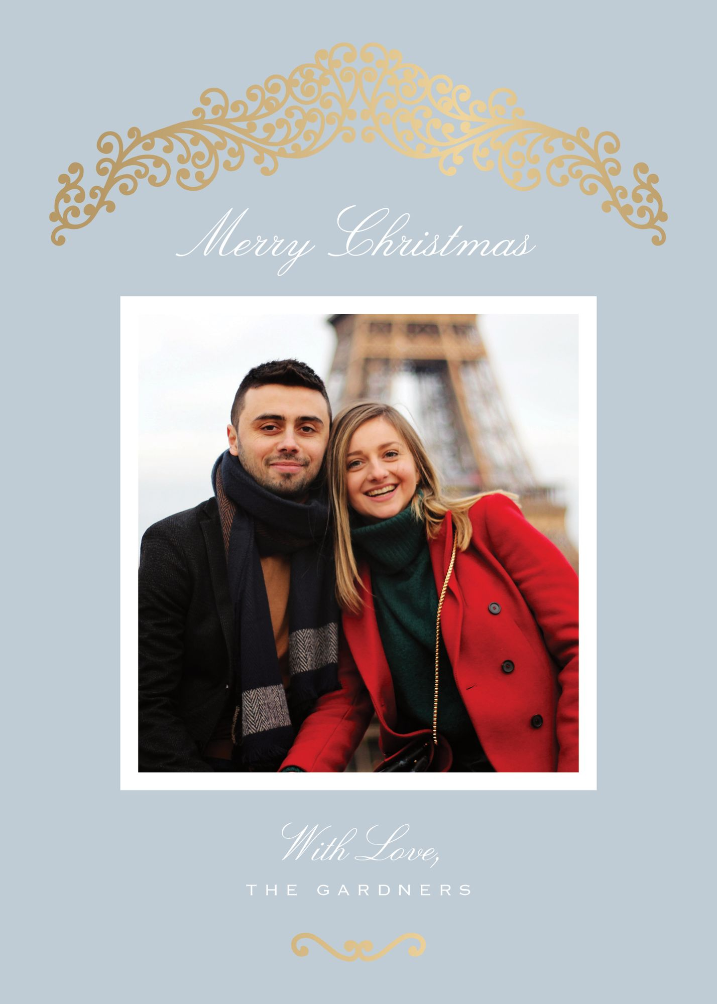 We are excited to partner with Neil Lane. celebrated jewelry designer. collector. and bridal authority to expand his collection with Paper Source into Holiday. Our in-house designers have drawn inspiration from Neil’s unique and stunning Wedding collection. Elegant florals. eye-catching foil. and ornate. luxe details will bring your vision to life. Sophisticated foil scrollwork elevates this already stunning photo card. Printed on Mohawk ultra white. 120 lb. card stock that is soft to the touch and matches our superfine white envelopes. Paper is FSC certified and made using wind power.
