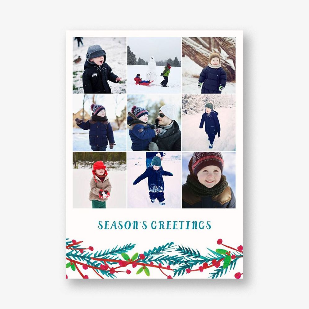 Send season’s greetings on this garland and grid holiday photo card by Mr. Boddington’s Studio for Paperless Post. Feature nine of your favorite photos on this customizable card. This card also features lush green garland to give your correspondence the added touch of Christmas.