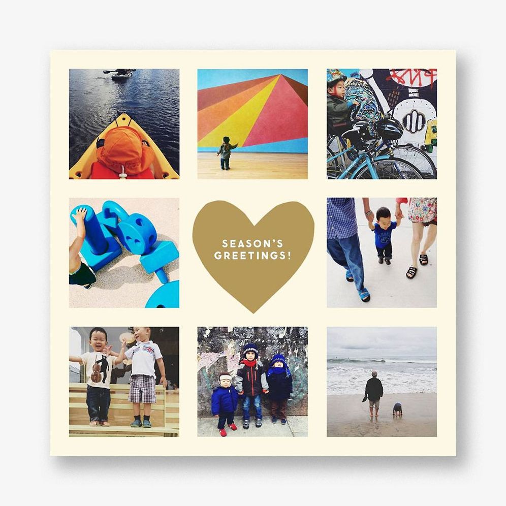 Share your family’s most special photos with a shining gold heart as centerpiece on this beautiful holiday photo card designed by The Indigo Bunting for Paperless Post.